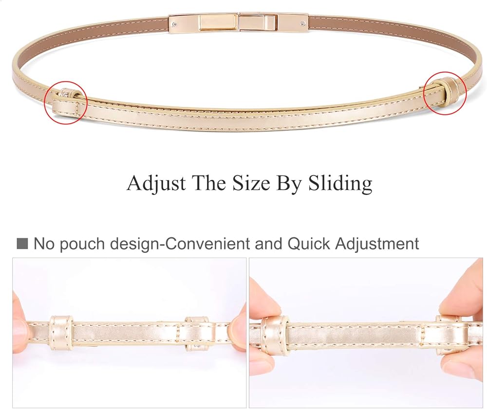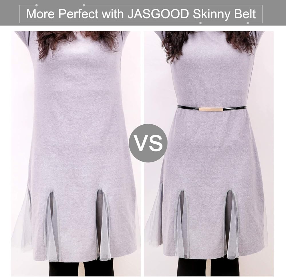 JASGOOD 3 عبوات من حزام جلدي رفيع للسيدات، حزام خصر نحيف مع إبزيم ذهبي للفستان