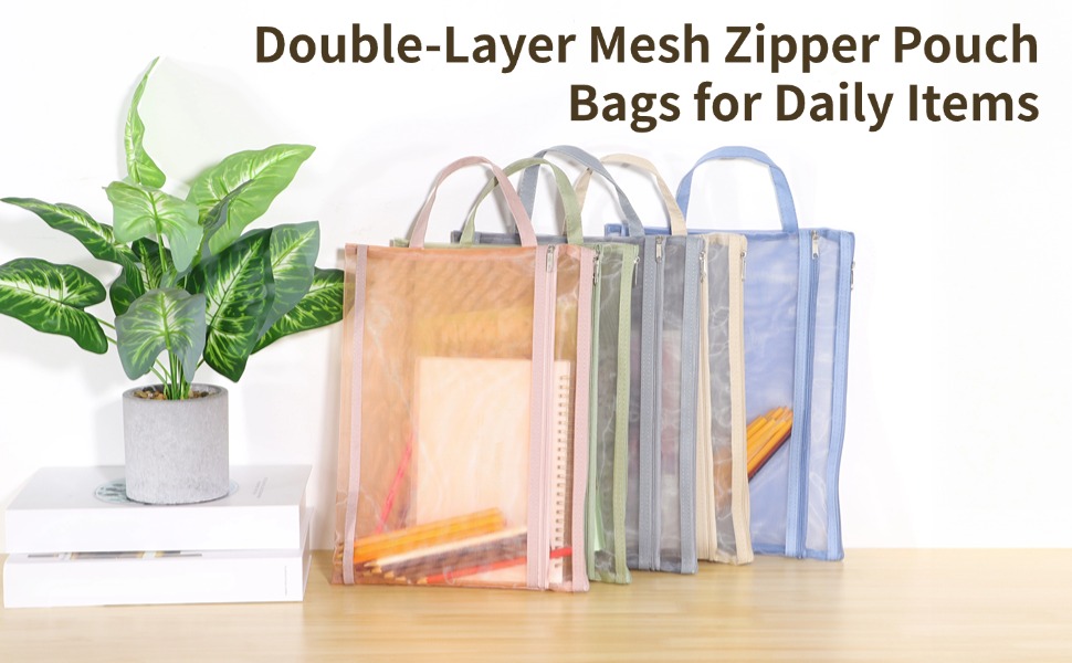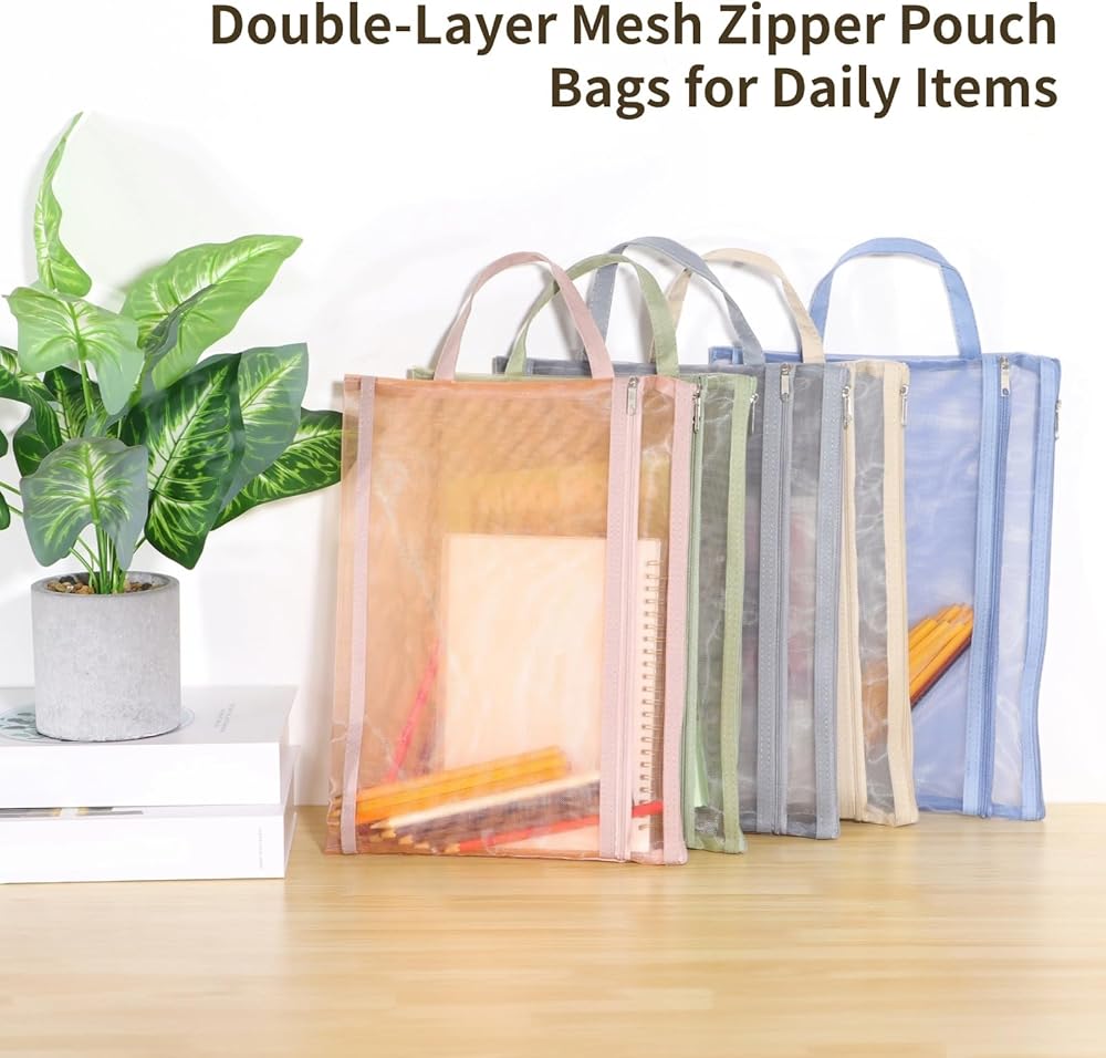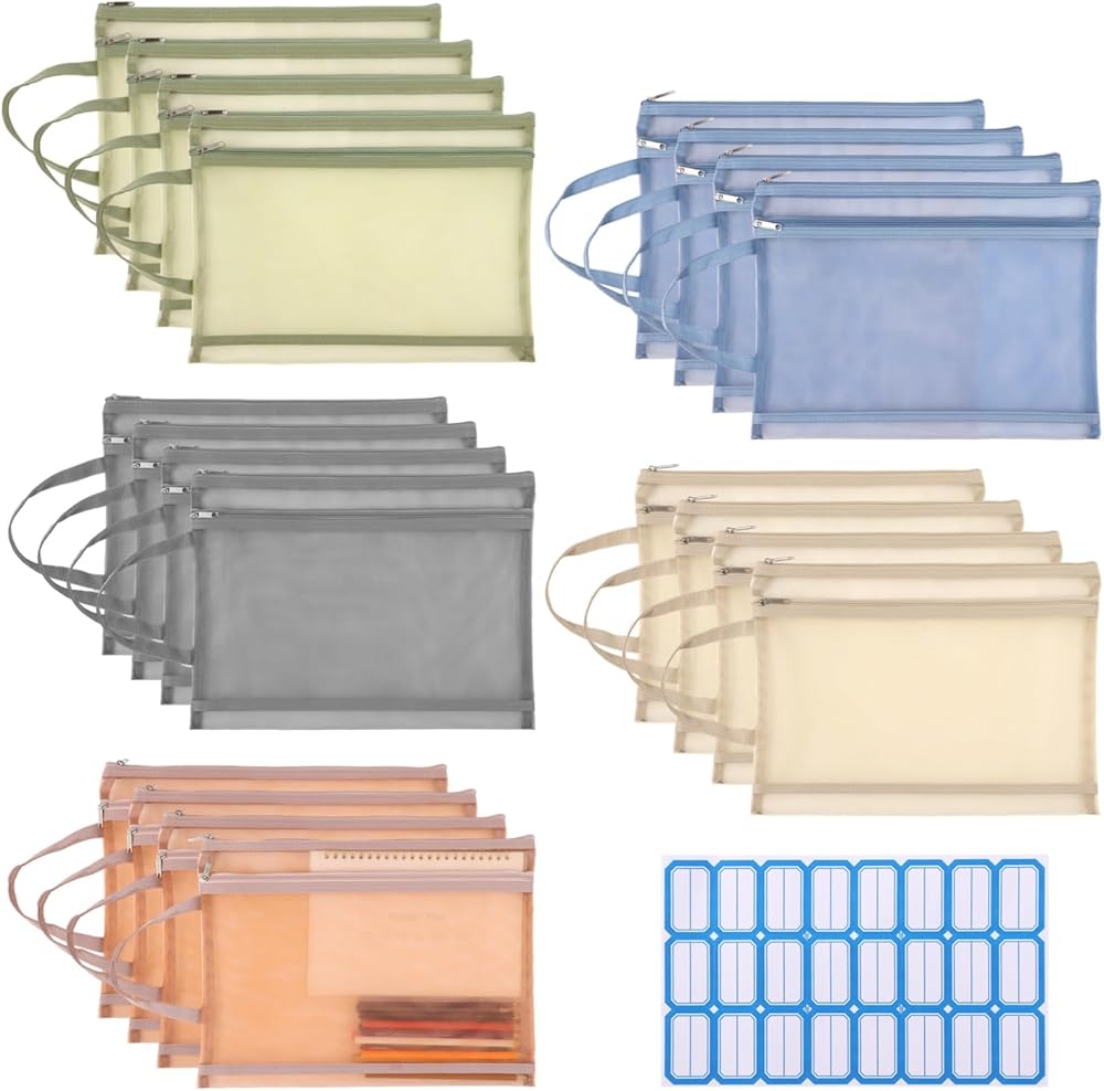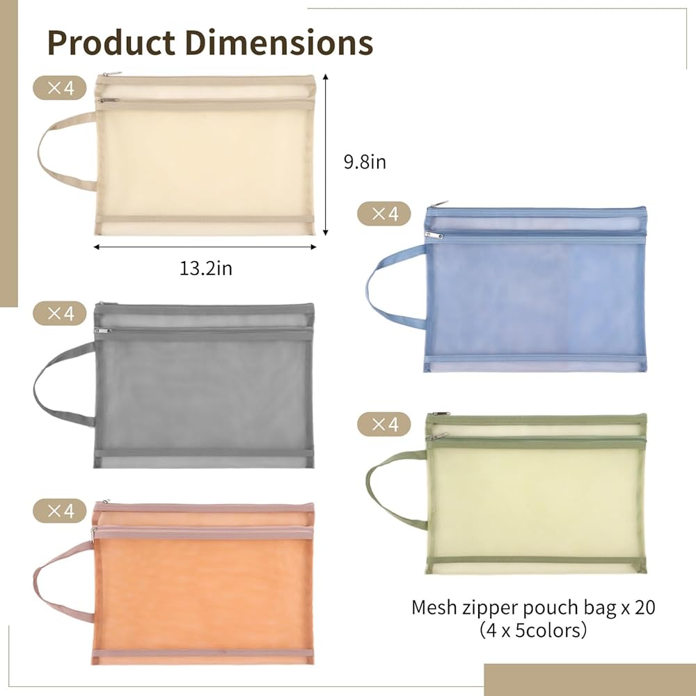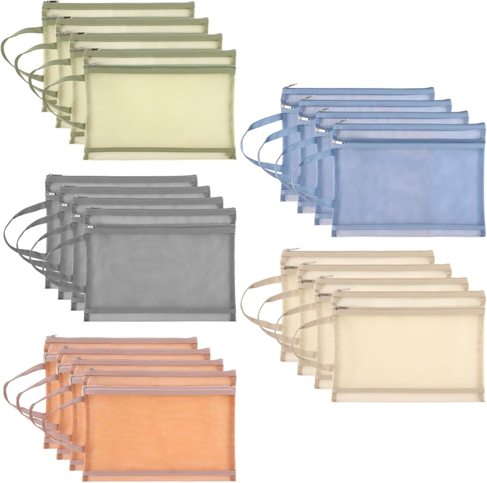 20 قطعة من أكياس الحقيبة الشبكية ذات الطبقة المزدوجة، وأكياس تخزين ألغاز التخزين، وحقائب تخزين الألعاب، وحقائب المستندات، وحقائب السفر بسحاب من النايلون مقاس A4، وحقائب شبكية للمدرسة والمكتب والمنزل