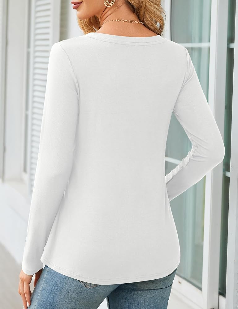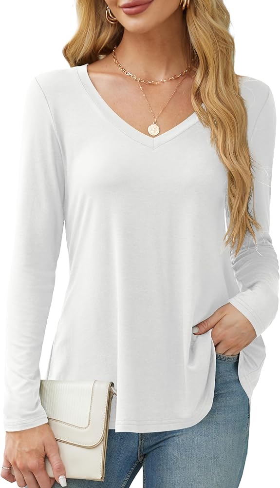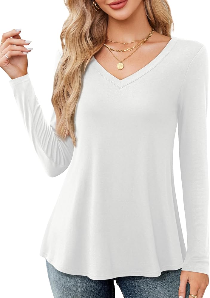 • تصميم ممتاز: تتميز قمصان Amoretu النسائية الخريفية برقبة على شكل حرف V مثيرة، ولون كلاسيكي ثابت، وحاشية متأرجحة لإخفاء بطنك بشكل مثالي
