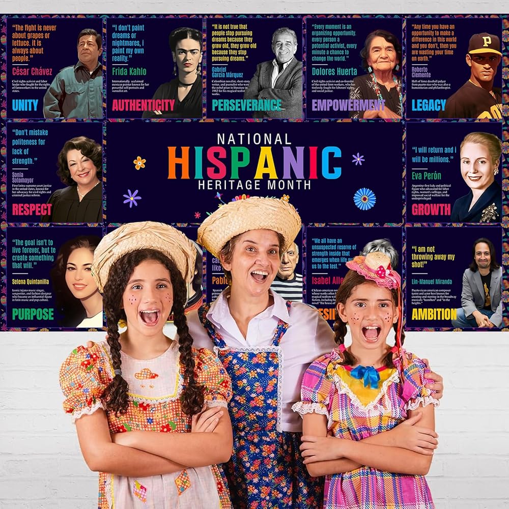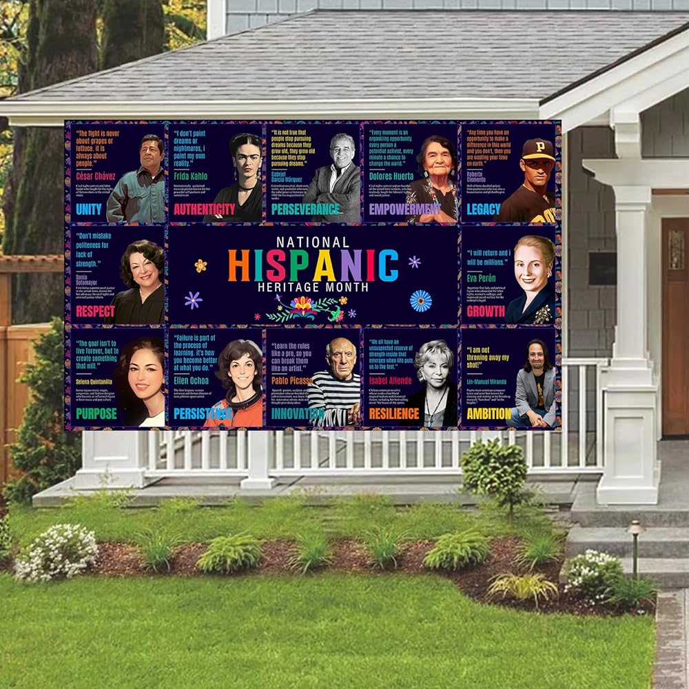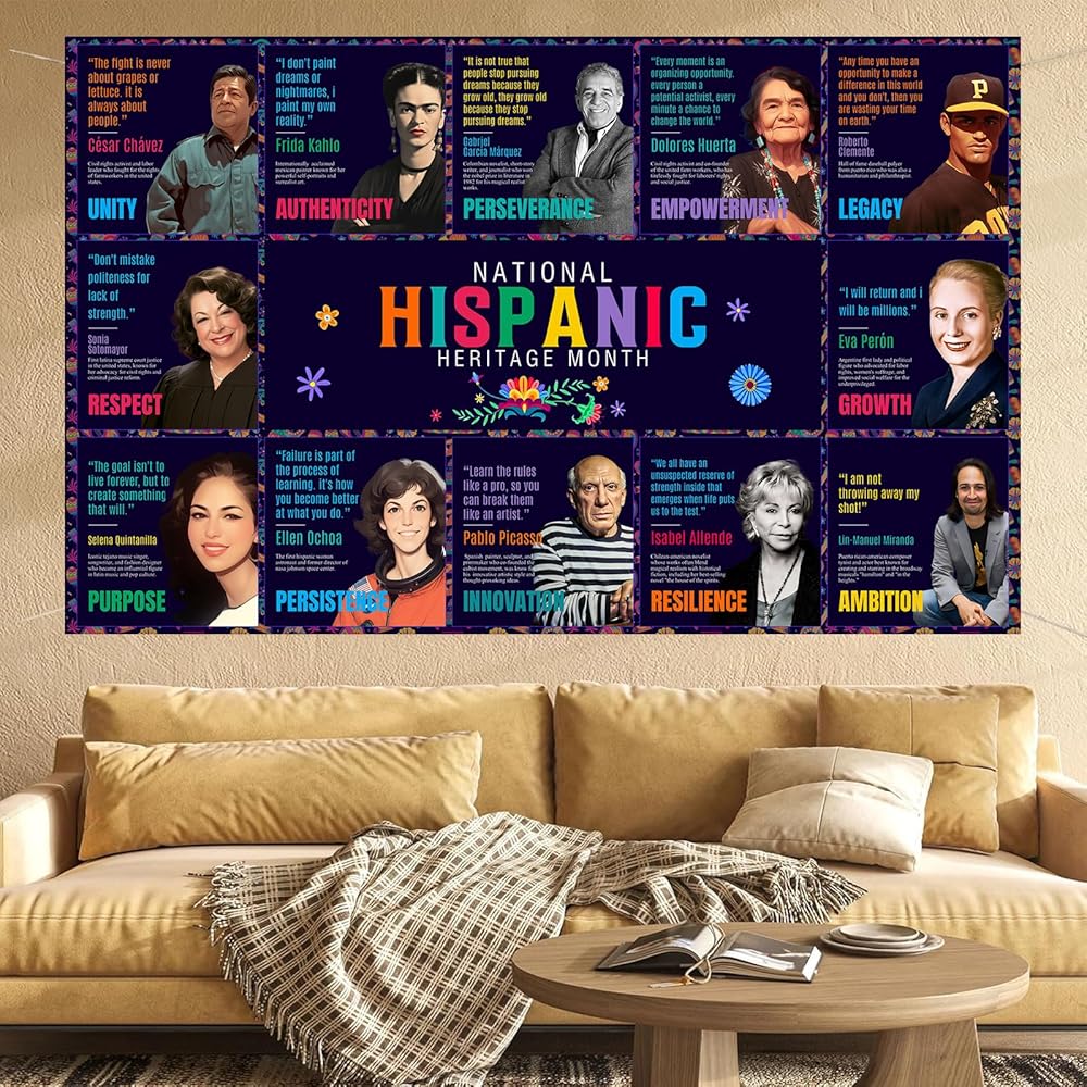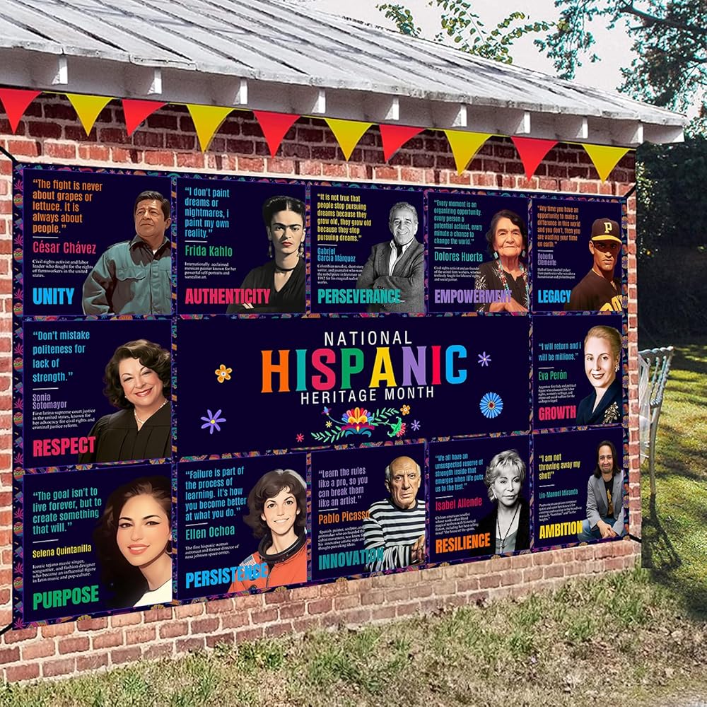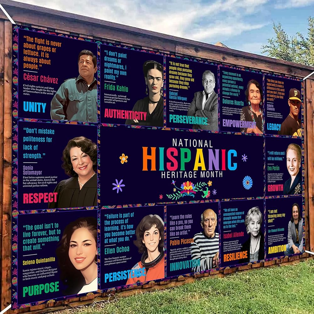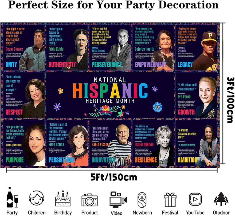 Dimensions - The Hispanic Heritage Month Backdrop Banner 160 x 100 cm/ 63 x 39.4 inches. Inspire students with Latino heritage month decorations that provide valuable lessons from famous Hispanic people.