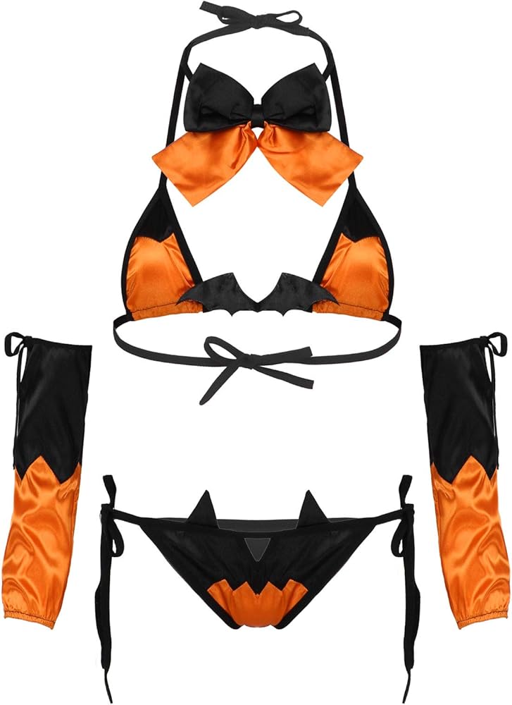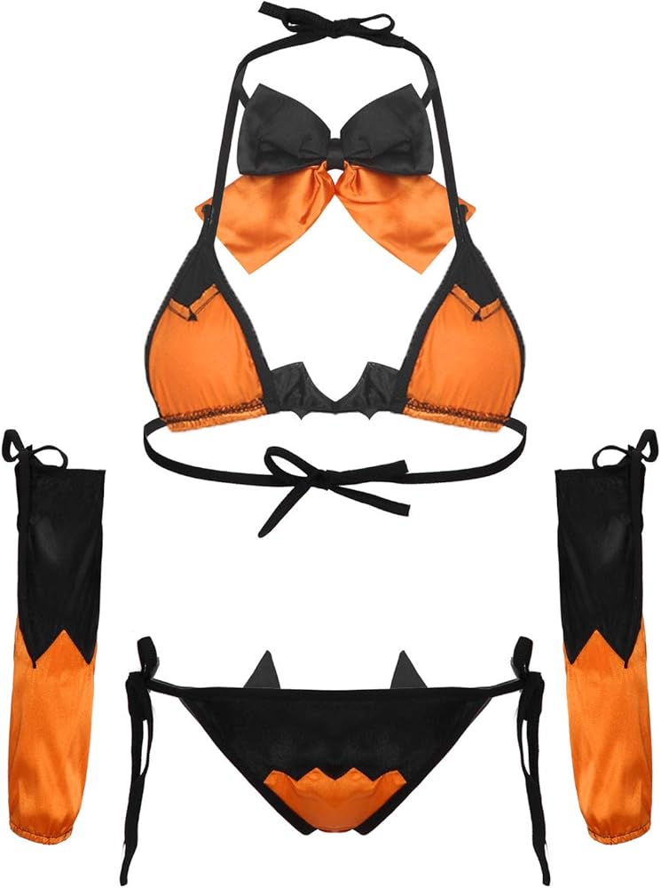 - Women's Halloween cosplay costumes devil bikini lingerie set nightwear fancy dress, flattering and attractive