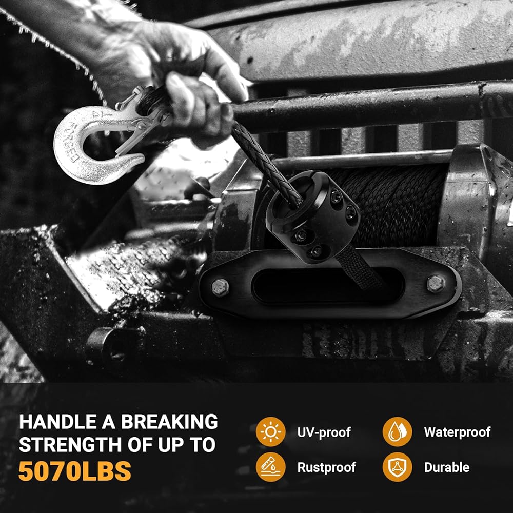 إكسسوارات عالية الجودة: الخطاف مقاس 1/4 بوصة مصنوع من الفولاذ لمزيد من القوة والمتانة. يمنع الرصاص المصنوع من الألومنيوم التآكل، كما توفر السدادة المطاطية للونش امتصاصًا ممتازًا للصدمات ومقاومة التآكل. غلاف النايلون بطول 3 أقدام مقاوم للأشعة فوق البنفسجية والمواد الكيميائية، ويحمي من التآكل والتعرض لأشعة الشمس وارتفاع درجة الحرارة والتآكل، ويحمي حبل السحب بخطافات من الحرارة الزائدة بسبب آلية الكبح.