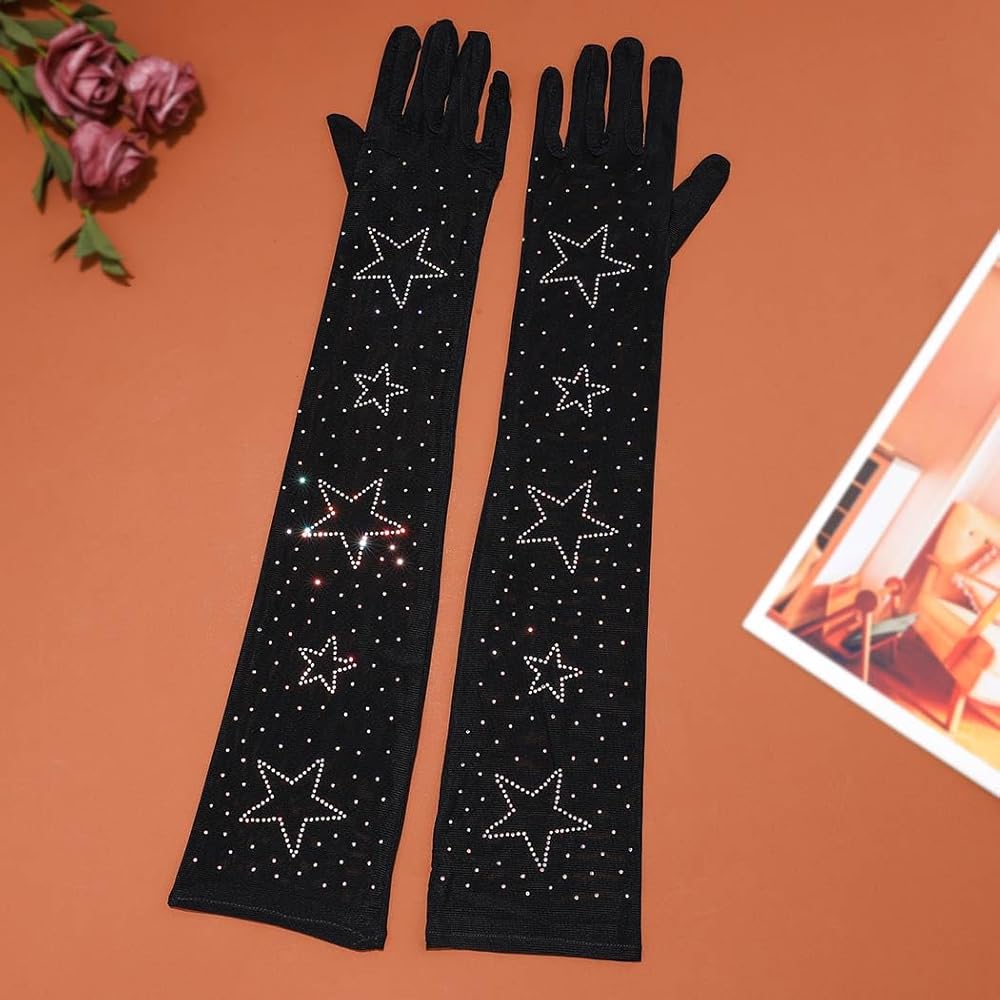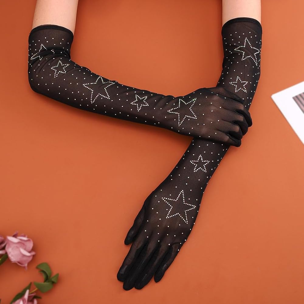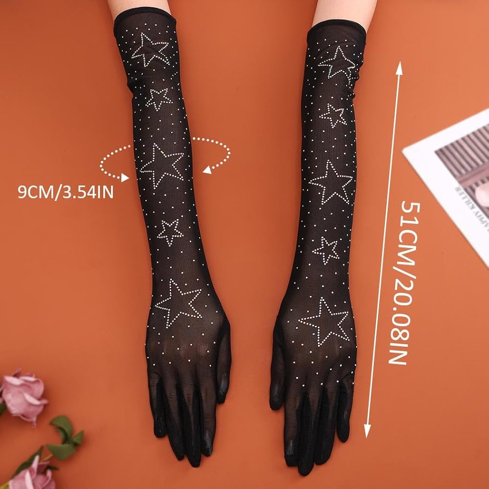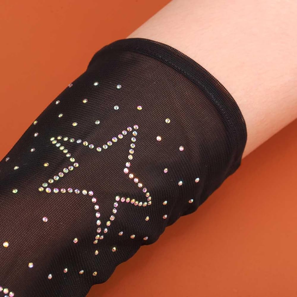GORAIS التألق حجر الراين قفازات النساء الأسود ستار شير أكمام أذرع تبريد قفازات الكوع طول هالوين زي الملحقات