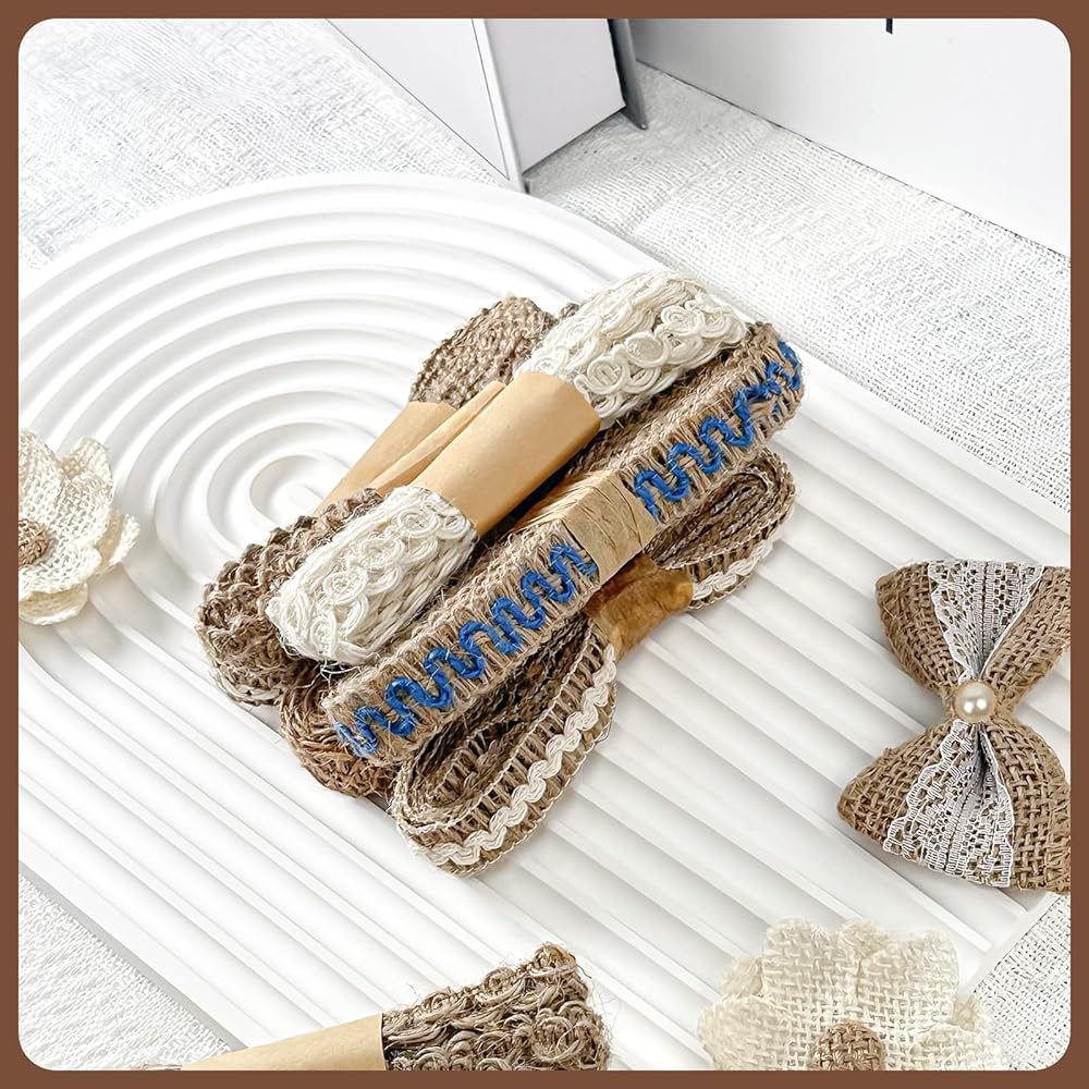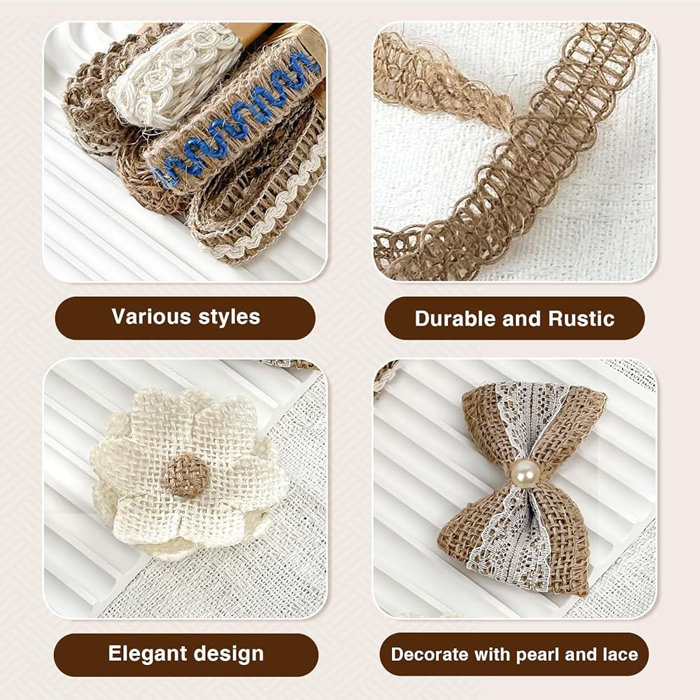 【ElEGANT DESIGN】These jute ribbons stitched by great craftsmanship and hemmed with trims, some of them design of lace edge and have a great appearance