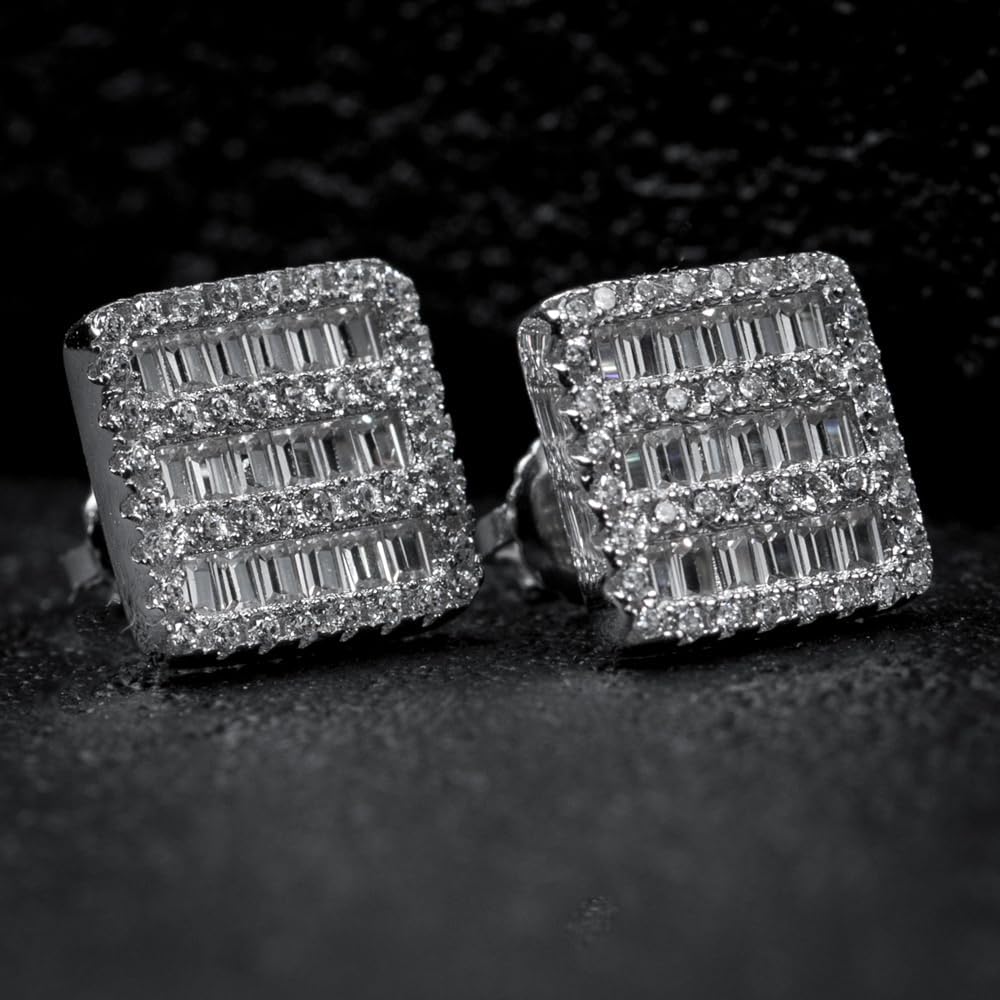 • Our Baguette Cut Cubic Zirconia earrings are also made of our finest AAA quality Cubic Zirconia stones. Fine setting of our stud earrings make these stand out from the rest. The hip hop style earrings studs for men are adorned with 5A cz baguette stones, meticulously hand set to provide a dazzling display of brilliance that will turn heads wherever you go. These aren't just any regular men's earrings, but a true testament to your fashion sense.