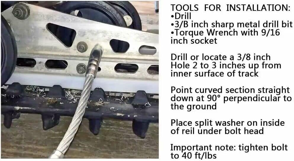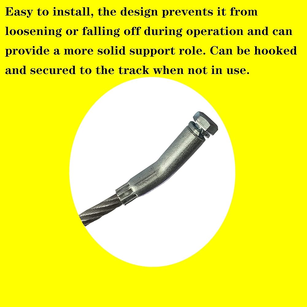 Pre-assembled for one-bolt mounting.Virtually indestructible 7/16" zinc plated wire rope for increased down pressure.Improved crimps for greater hold.Hooks and stays on rail when not in use.Knurled mounting surface eliminates spinning and loosening on the slide rail.Hi-Roller recommended for track heights 2-1/2" and taller.All three tip designs are interchangeable with both cable lengths