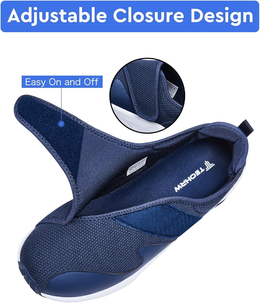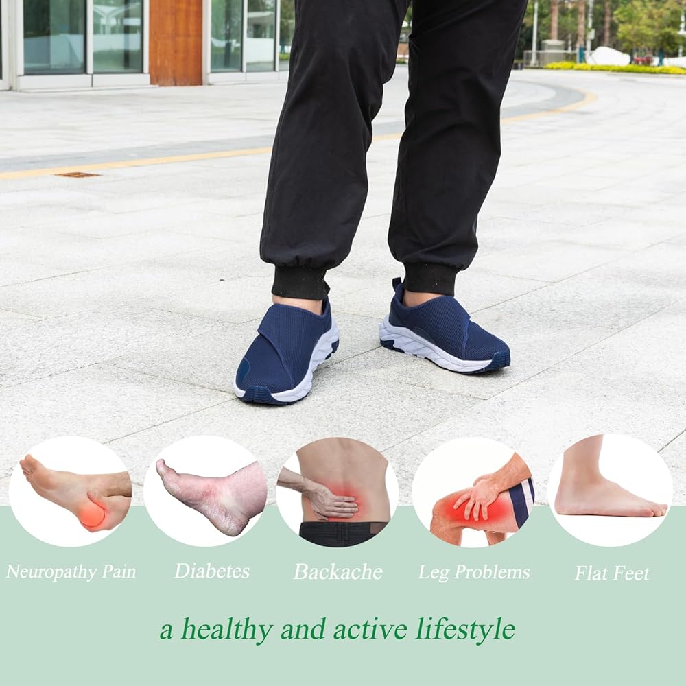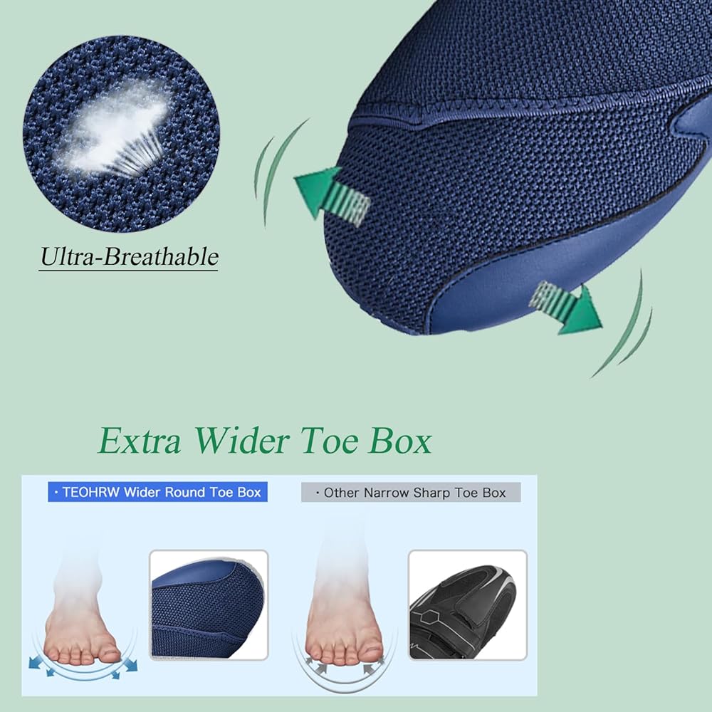 مناسب للأقدام المتورمة: يوفر صندوق أصابع القدم الواسع والعميق مساحة كافية للأقدام الحساسة. أكثر راحة وملاءمة دقيقة لمساعدتك على تقليل التهيج. مصمم للأقدام المتورمة والحساسة.