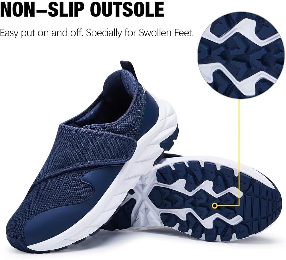 أشرطة فيلكرو قابلة للتعديل: يمكنك ارتداء الأحذية ذات العرض الواسع بسهولة وخلعها في حالة تورم القدمين أو الأورام أو الوذمة أو مرض السكري أو أصابع القدم المطرقة. يوفر راحة ممتازة لقدميك، ومناسب لمختلف الأقدام الحساسة.