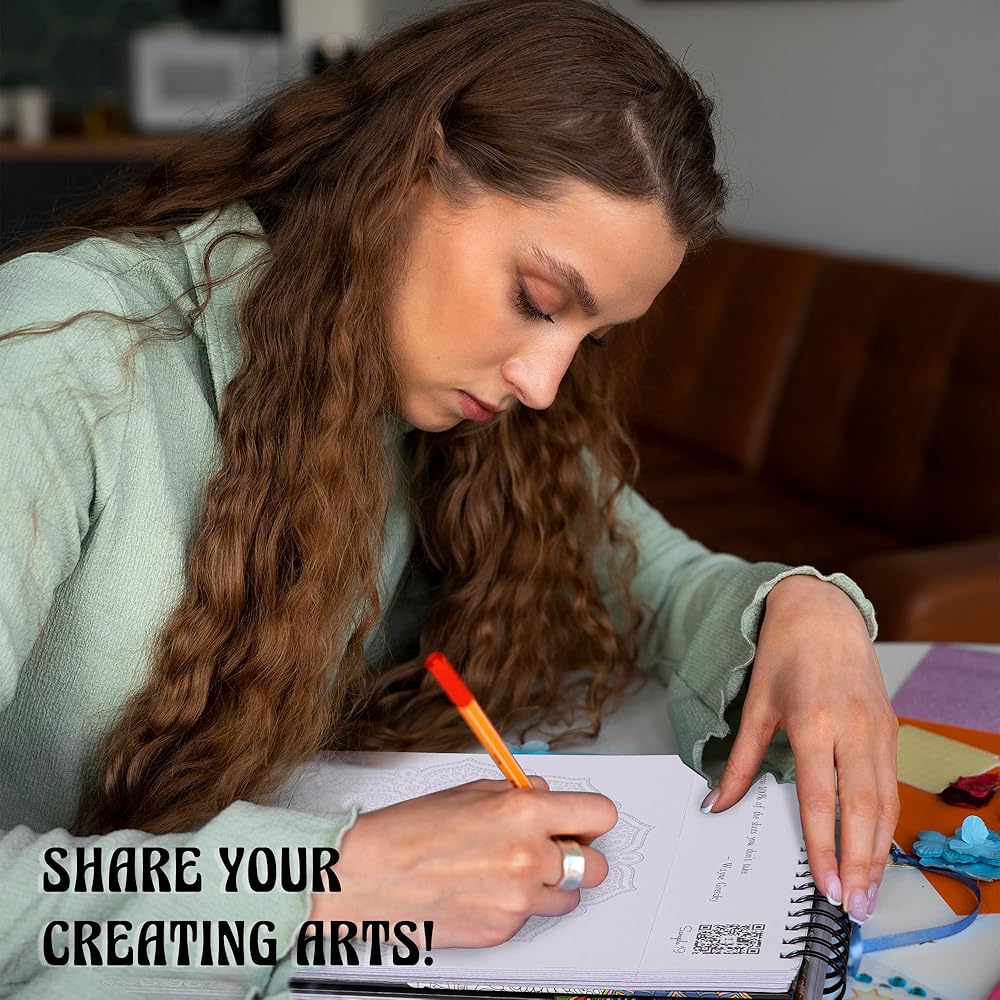 شارك إبداعاتك: كتاب التلوين للبالغين الخاص بنا ذو وجه واحد ويتميز بصفحات قابلة للتمزيق لسهولة المشاركة! مثالية لأخذها إلى المدرسة أو في الرحلات للتركيز على فنك. شارك إبداعاتك الملهمة مع الآخرين، أو اعرضها على حائطك أو في إطار كعمل فني، مما يعزز السعادة.