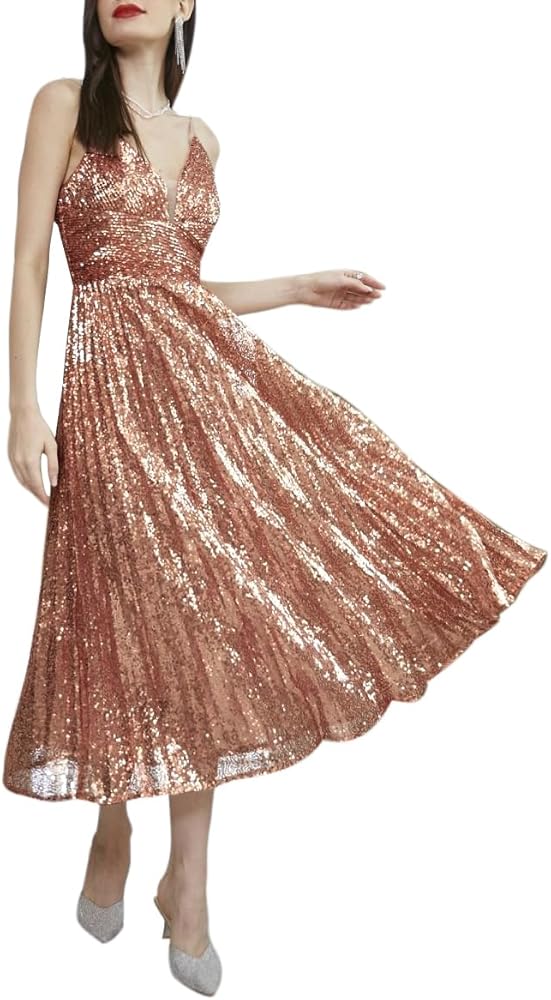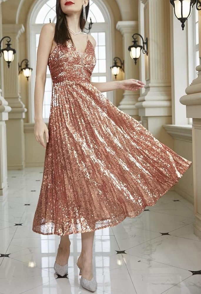 【المناسبات】اجعلها ليلة لا تُنسى مع فستان متوسط الطول بدون ظهر مزين بالترتر! يتدفق الخصر الإمبراطوري العالي إلى ثوب ذهبي وردي. استعد لالتقاط صور رائعة في حفلة، أو حفل زفاف، أو حفلة موسيقية، أو كوكتيل، أو مسائية، أو نادي، أو بار أو تسوق غير رسمي، أو مأدبة، أو عمل، أو موعد، أو ليلة في الخارج، أو حفلة توديع العزوبية، أو الرقص، أو ليلة الحفلة، أو مناسبة خاصة.