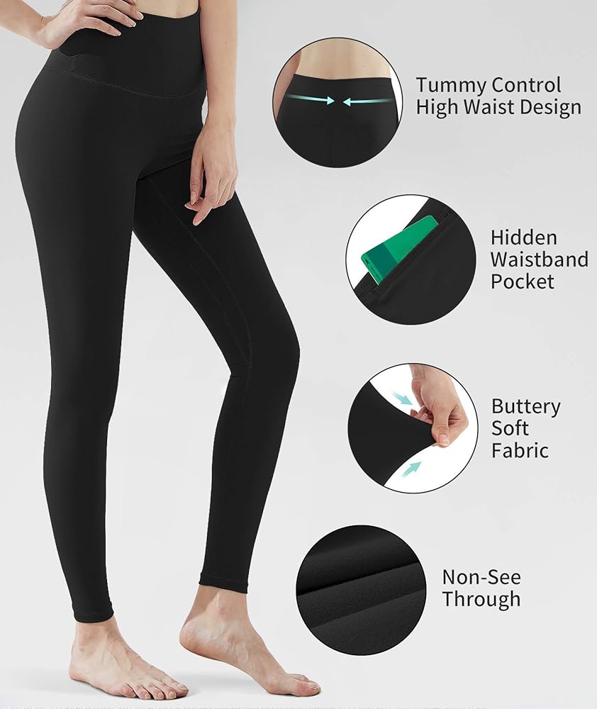 Buttery Soft & Squat-Proof: This workout leggings with pockets are made with lightweight and four-way stretch fabric; sweat-wicking and breathable fabric offer great support and coverage with a cool, soft, and silky feel, So you can bend, squat, stretch or do any pose you want
