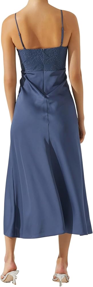 Feel flirty in this silky smooth ASTR the label slip dress. Perfect for your next date night out, a leg-baring side slit and lace highlight your figure in this slinky, sateen dress.