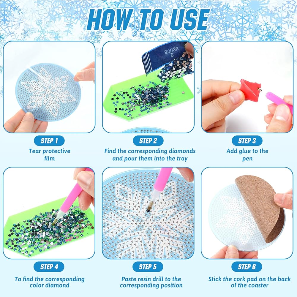 Our DIY diamond painting coasters can be applied to kitchen, dining table and desk decoration, and also can be applied as coasters for most coffee cups, glasses, etc., so you can enjoy your food and coffee.