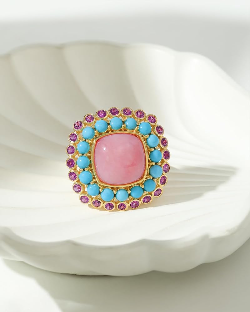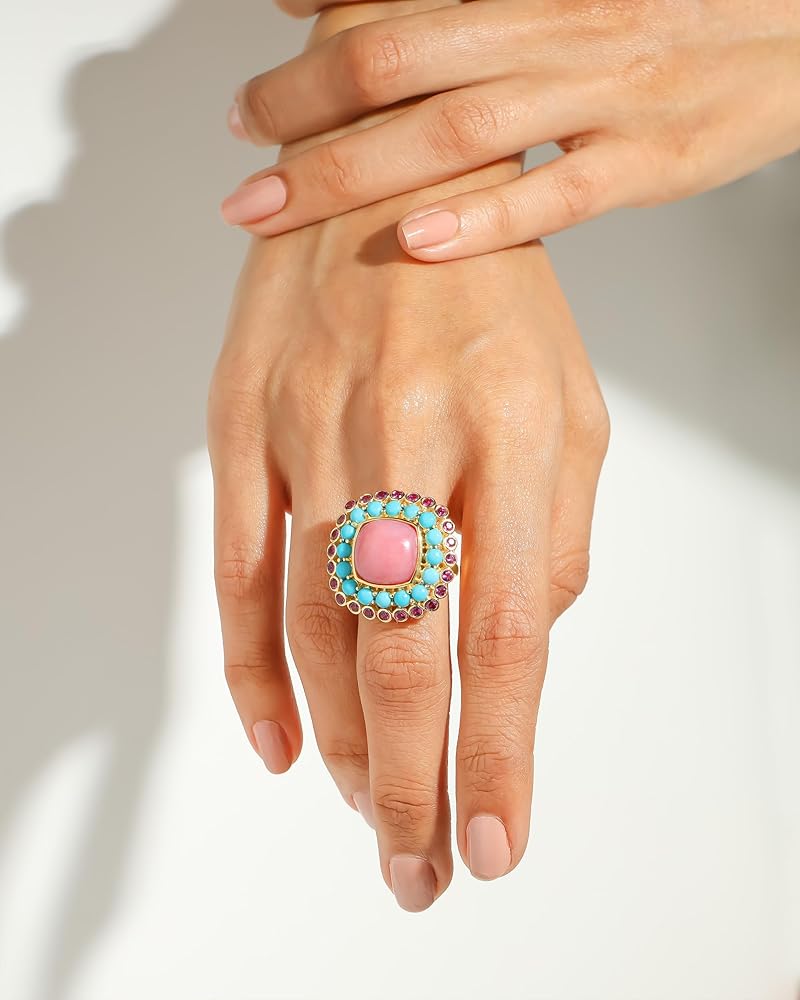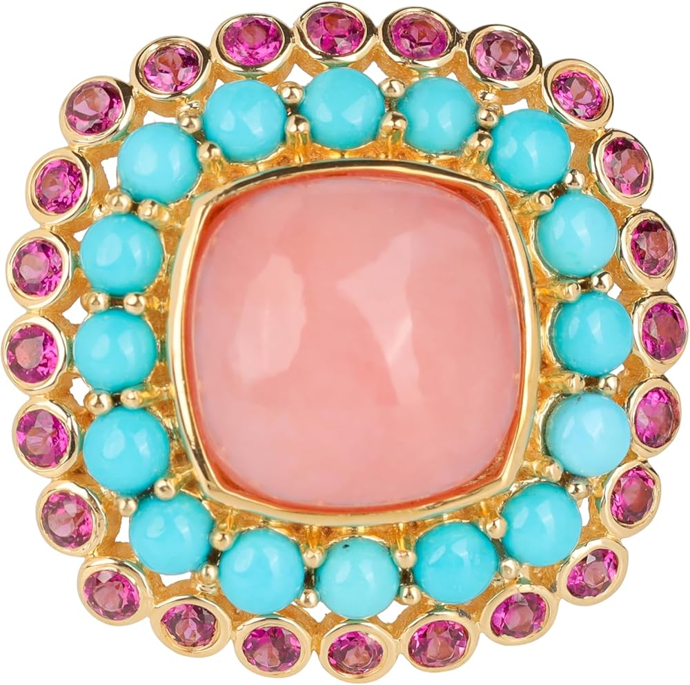 خاتم YoTreasure Pink Opal بيان الصلبة من الذهب عيار 14 قيراطًا أكثر من 925 مجوهرات من الفضة الاسترليني