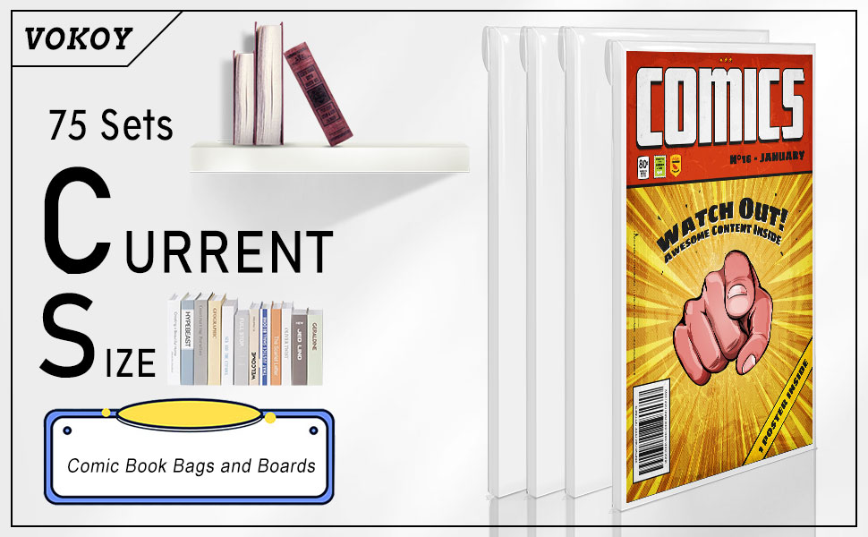 • 75 مجموعة من حقائب وألواح الكتب الهزلية: سوف تحصل على 75 قطعة من أكياس الكتب الهزلية بالحجم الحالي مع غطاء 1 1/5 بوصة و25 قطعة من الألواح البيضاء، يمكن إعادة استخدامها وسهولة إدخال الرسوم الهزلية وإزالتها، ويمكنها حماية وعرض كتابك الهزلي أكثر مريح وآمن ومريح