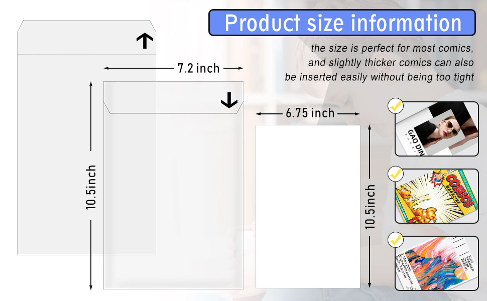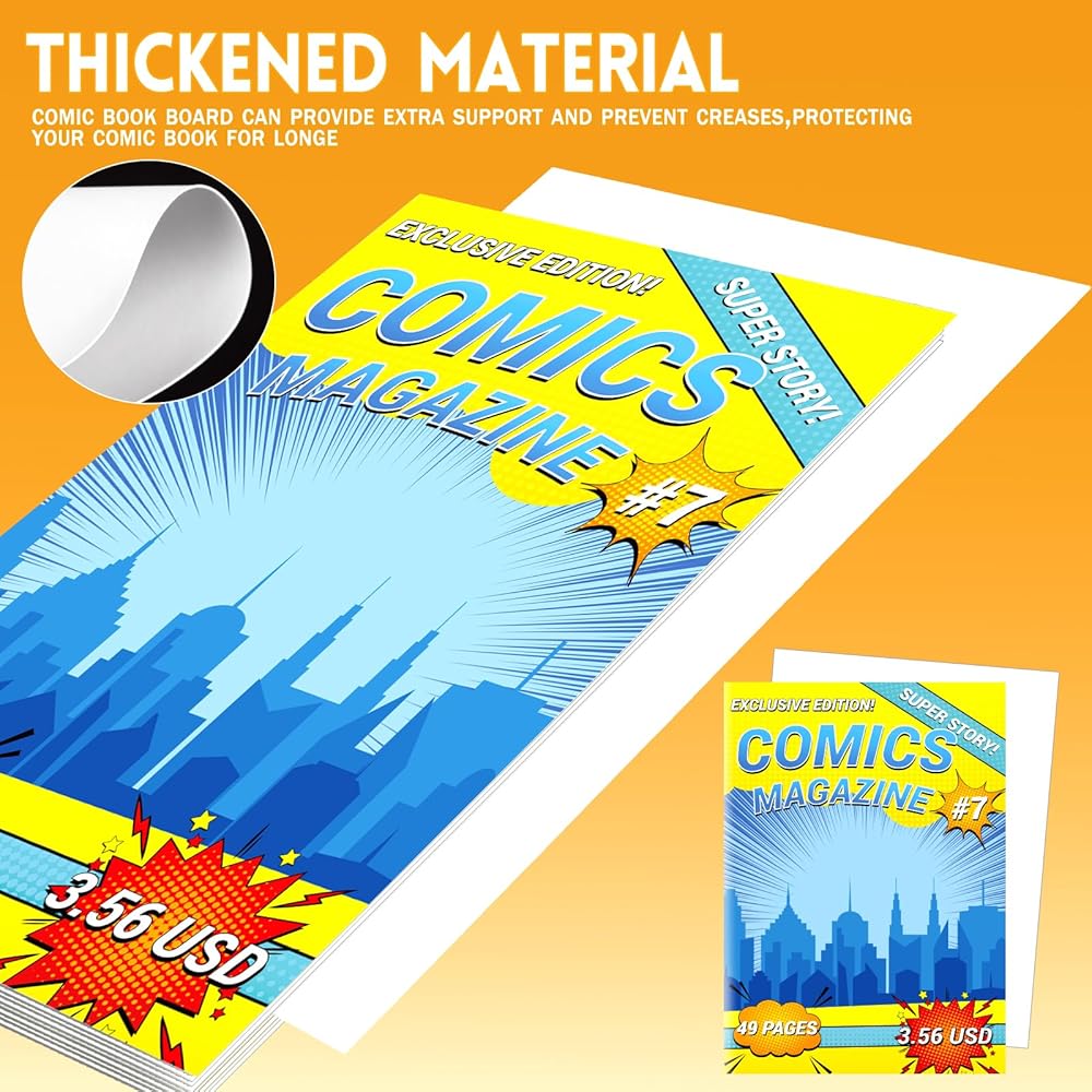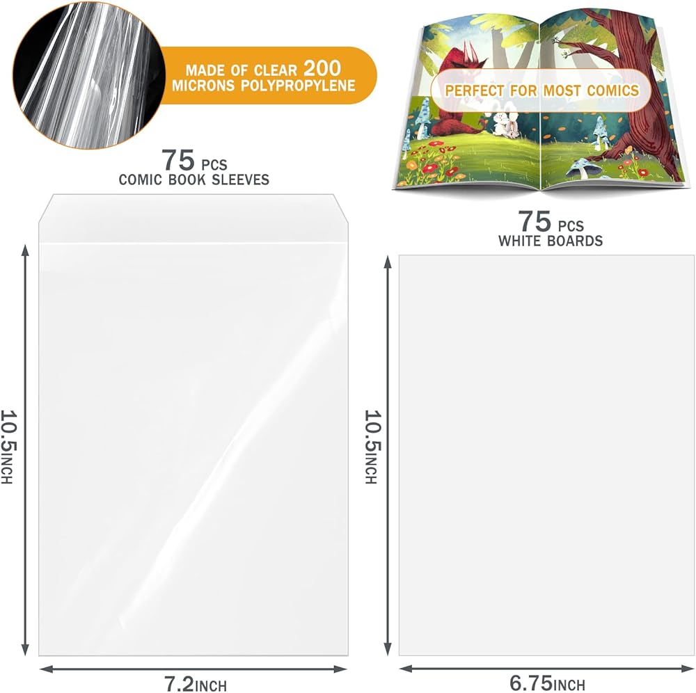 • مادة سميكة: أكمام الكتب الهزلية مصنوعة من مادة البولي بروبيلين الشفافة 200 ميكرون، أكثر سمكًا من الأكمام العادية، وتأتي مع لوحة كتب هزلية لتوفير دعم إضافي ومنع التجاعيد، وحماية كتابك الهزلي لفترة أطول