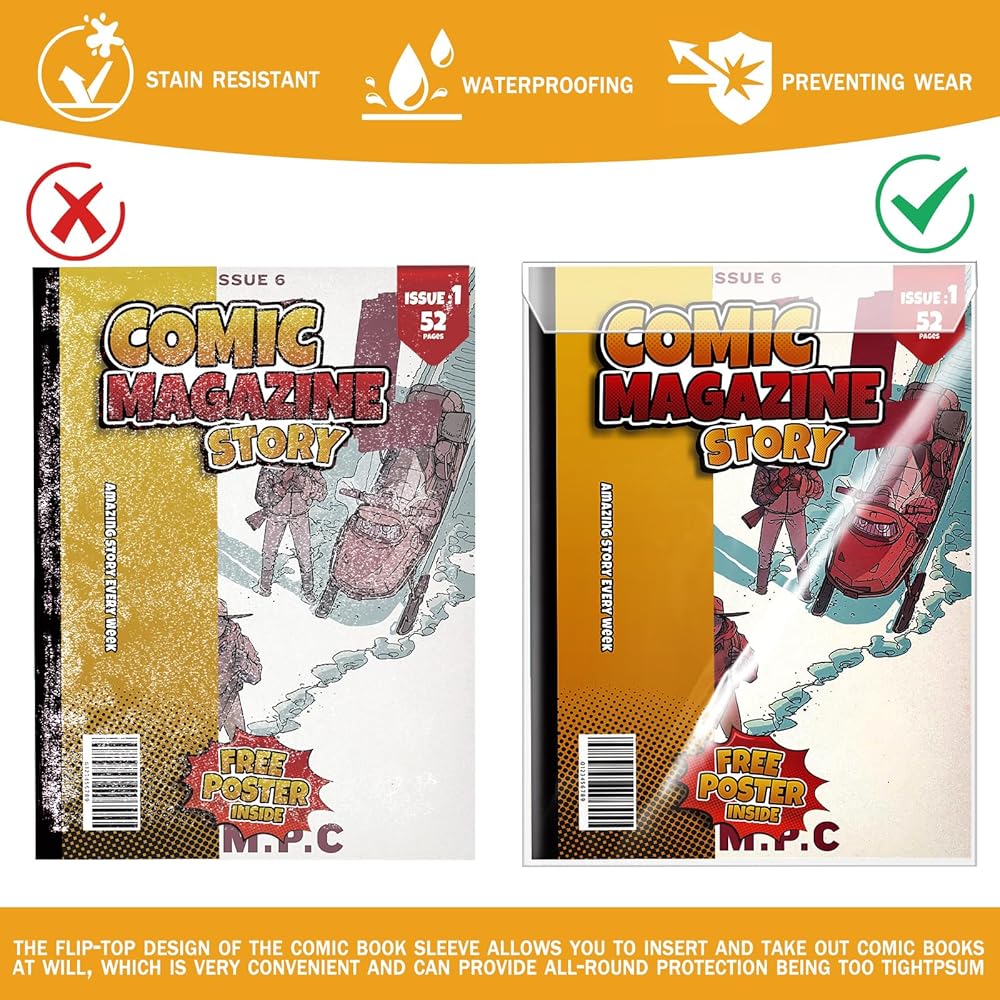 • مريح وسهل الاستخدام: يتيح لك التصميم القلاب لغلاف الكتاب الهزلي إدخال الكتب الهزلية وإخراجها حسب الرغبة، وهو مريح للغاية ويمكن أن يوفر حماية شاملة، مما يجعل مجموعتك الهزلية آمنة وسريعة ومنظمة