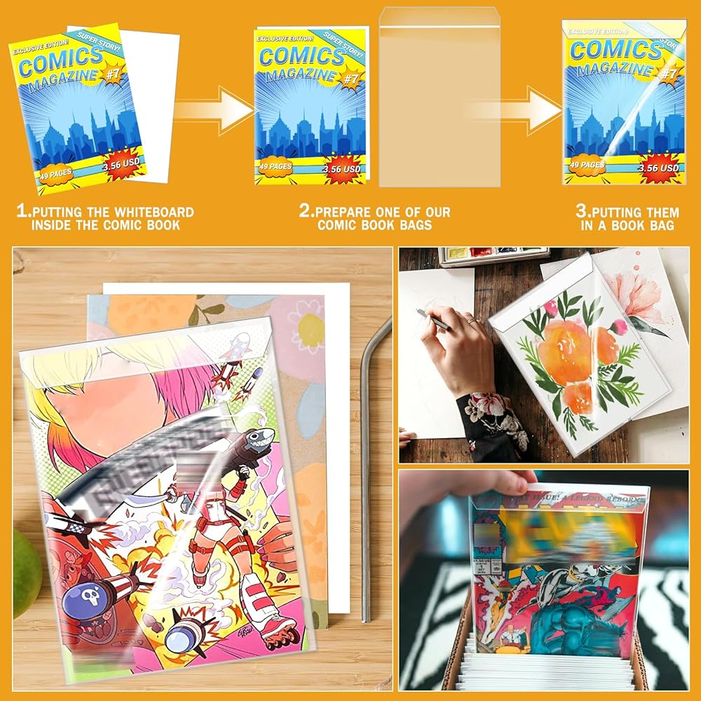 75 مجموعة من حقائب وألواح الكتب الهزلية بالحجم الحالي، وأغلفة الكتب الهزلية الشفافة القابلة لإعادة الاستخدام مع تخزين مجلة القصص المصورة العادية من الورق المقوى الأبيض على الوجهين للأعمال التجارية الصغيرة