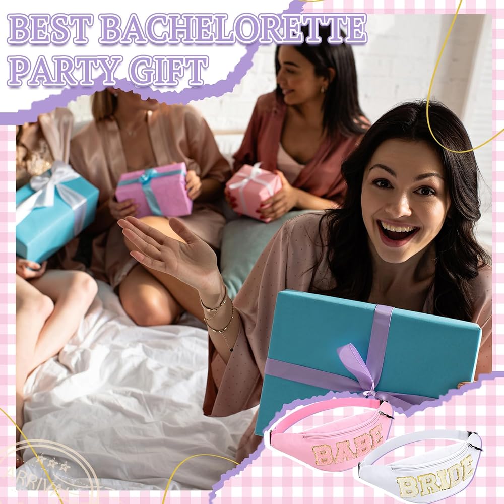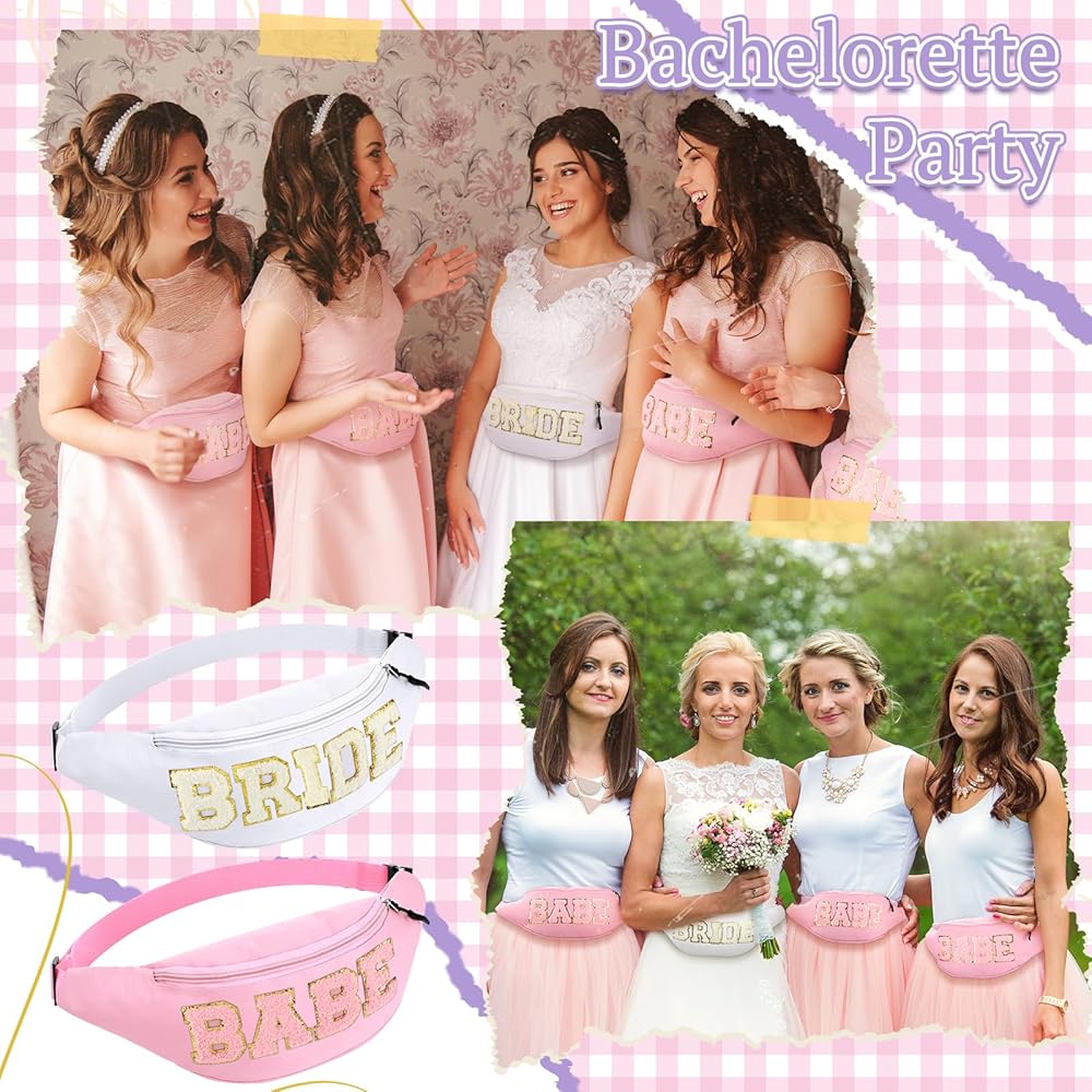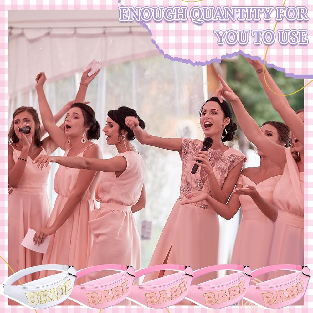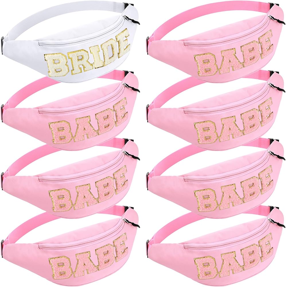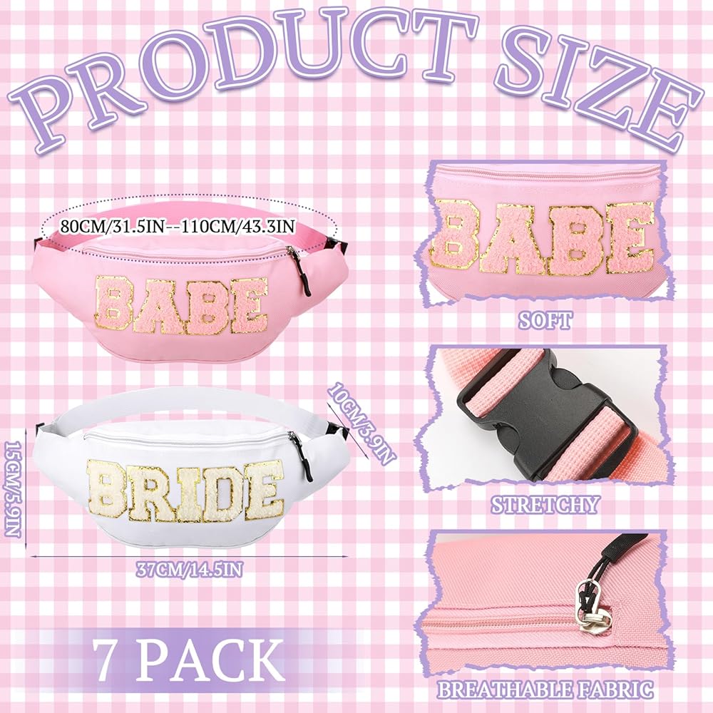 • Thoughtful Bundle Package: this bachelorette fanny packs set comprises a unique packaging of 1 white bride fanny pack along with 7 pink babe fanny packs, ideal for bachelorette parties, bridal showers and wedding themed activities; With this assortment, everyone in your party will feel special and included