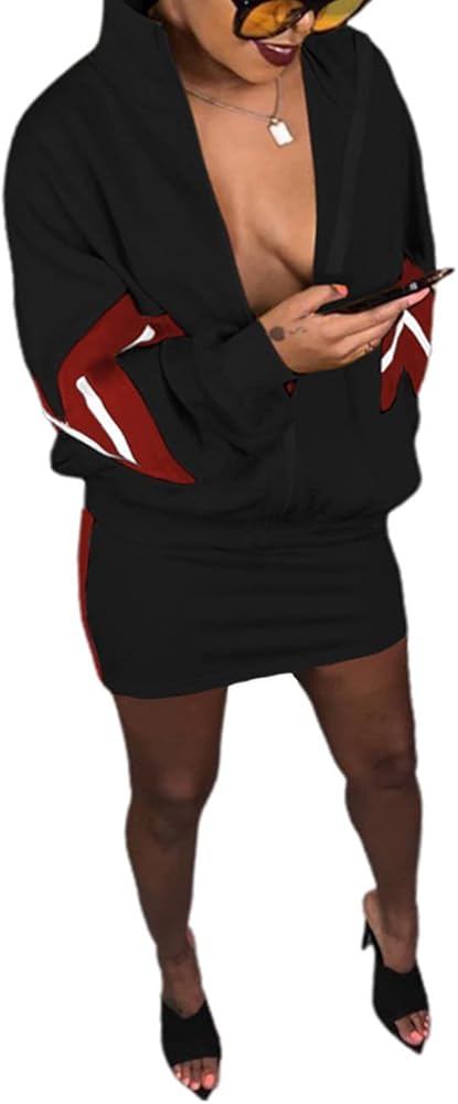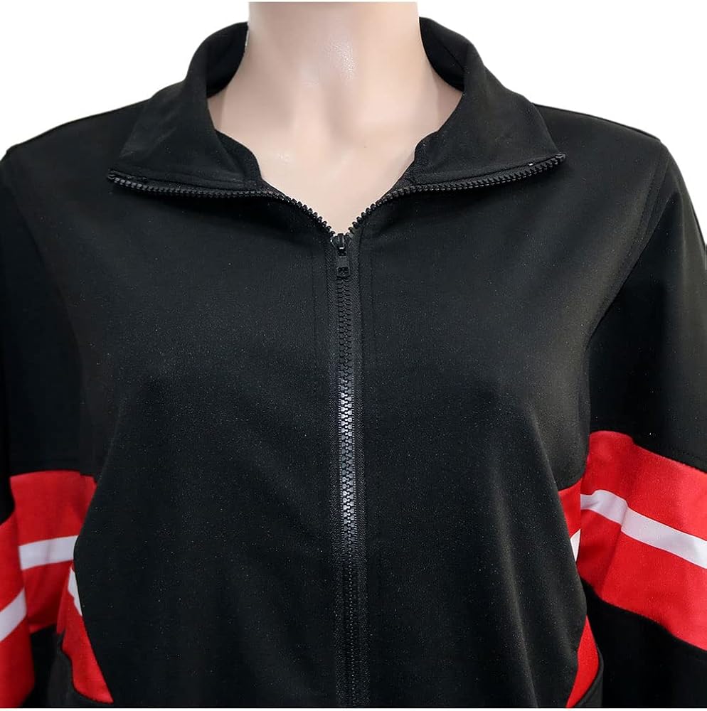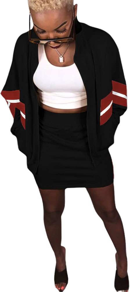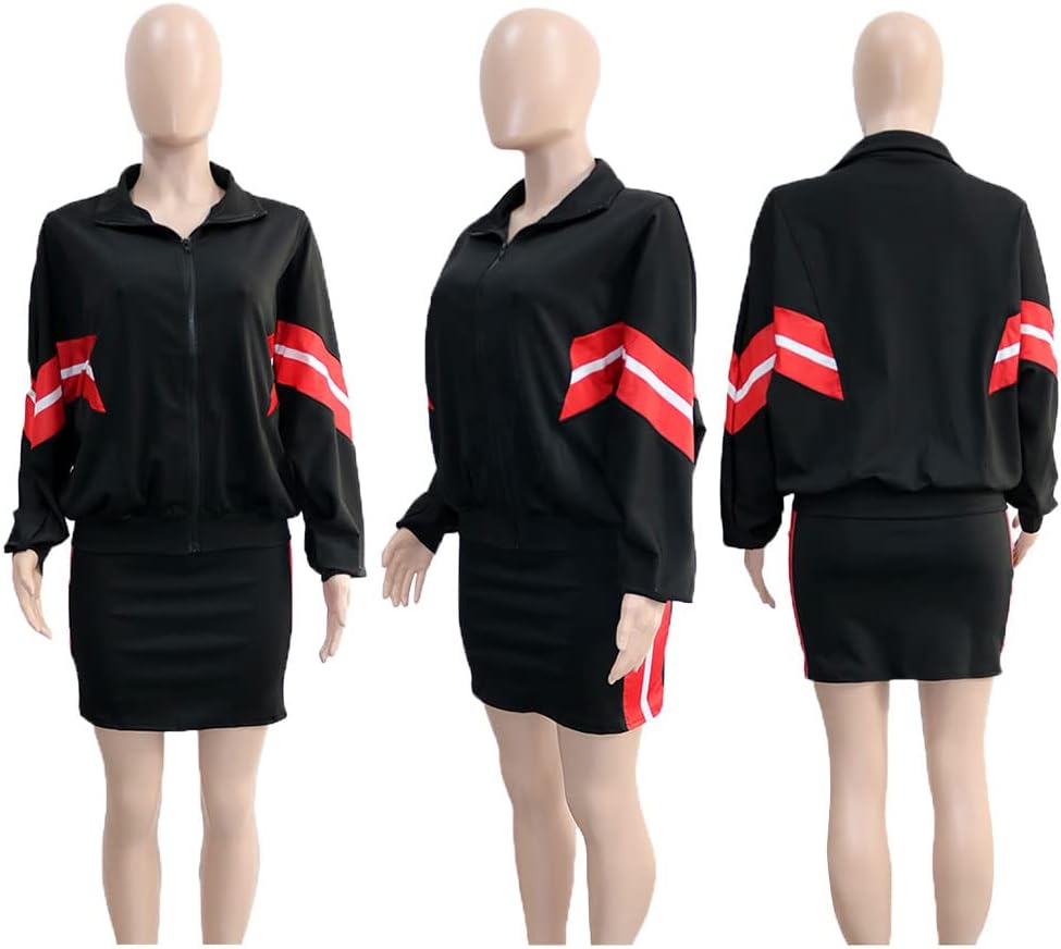 السمات: ملابس كاجوال مكونة من قطعتين للسيدات مع رقعة مخططة، طقم تنورة وقميص علوي، مقاس كبير، أكمام طويلة معطف بسحاب مع جيبين جانبيين، تنورة صغيرة مع رقعة شريطية جانبية، تنورة من قطعتين مع سترة، نمط كاجوال يمكن ارتداؤه لأعلى أو لأسفل.