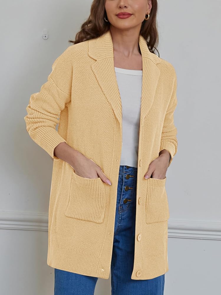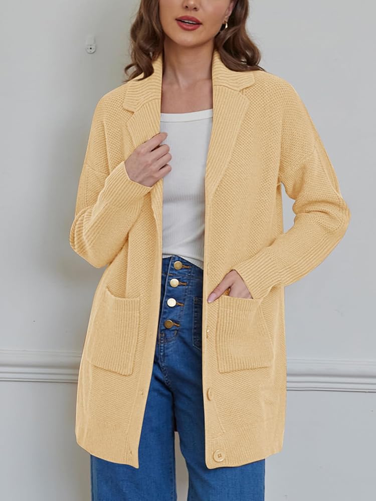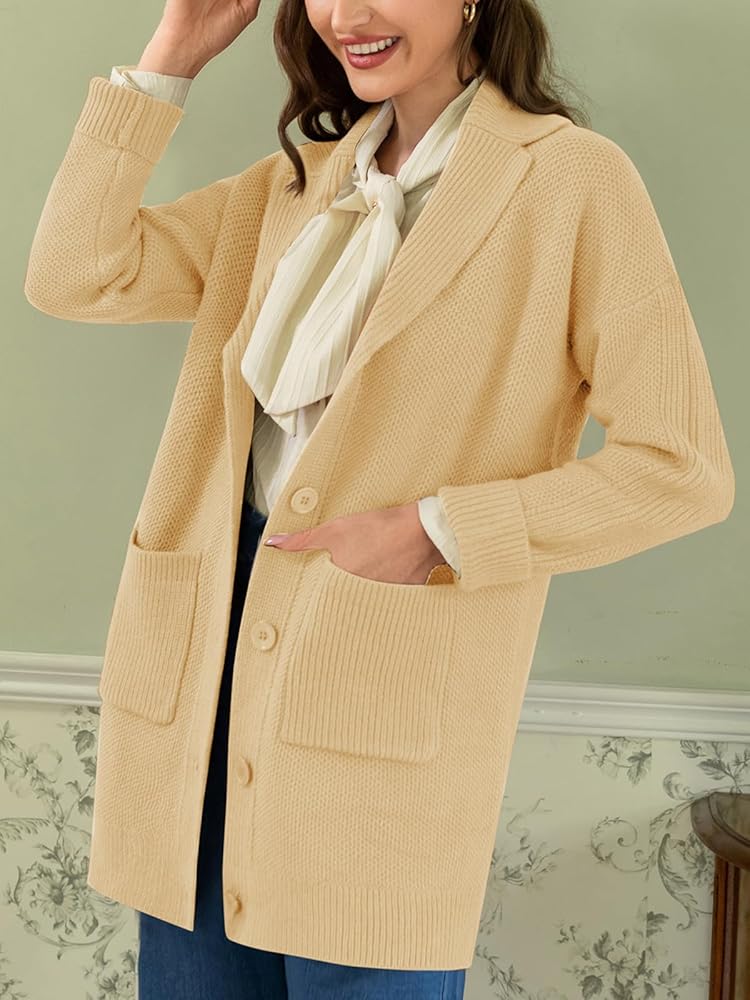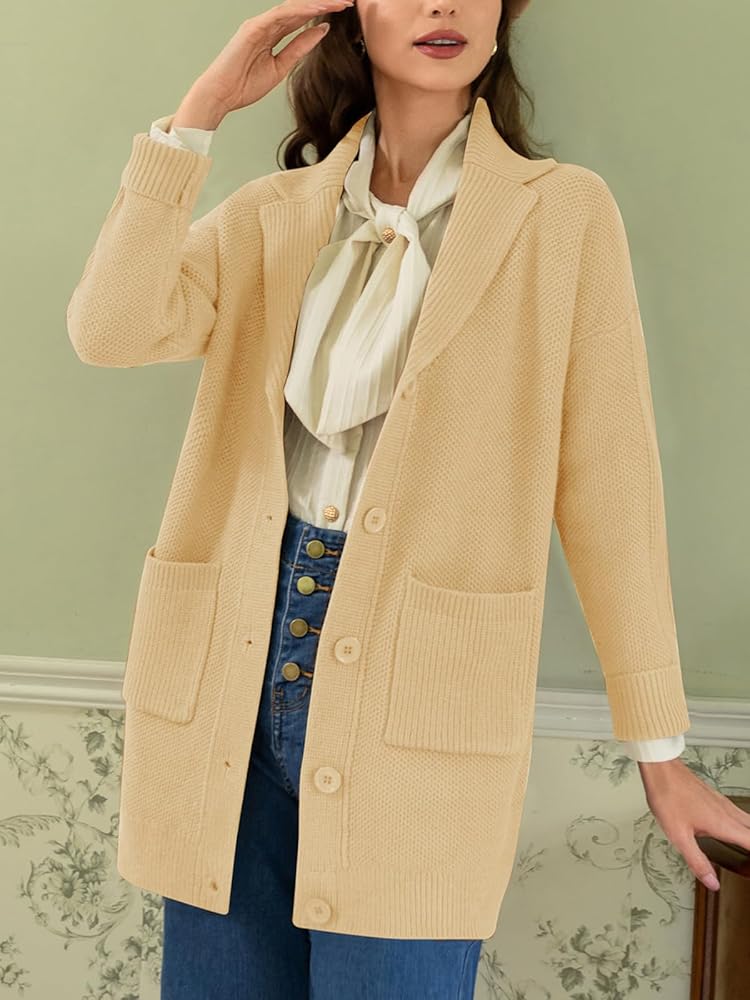 [رقبة طية صدر السترة وزر للإغلاق]: مصممة برقبة طية صدر أنيقة وإغلاق عملي بزر سفلي، توفر هذه السترة عملية ومظهر أنيق. يمنحك التصميم المفتوح من الأمام المرونة لارتدائه فوق أي ملابس، مما يجعله قطعة مثالية للطبقات.