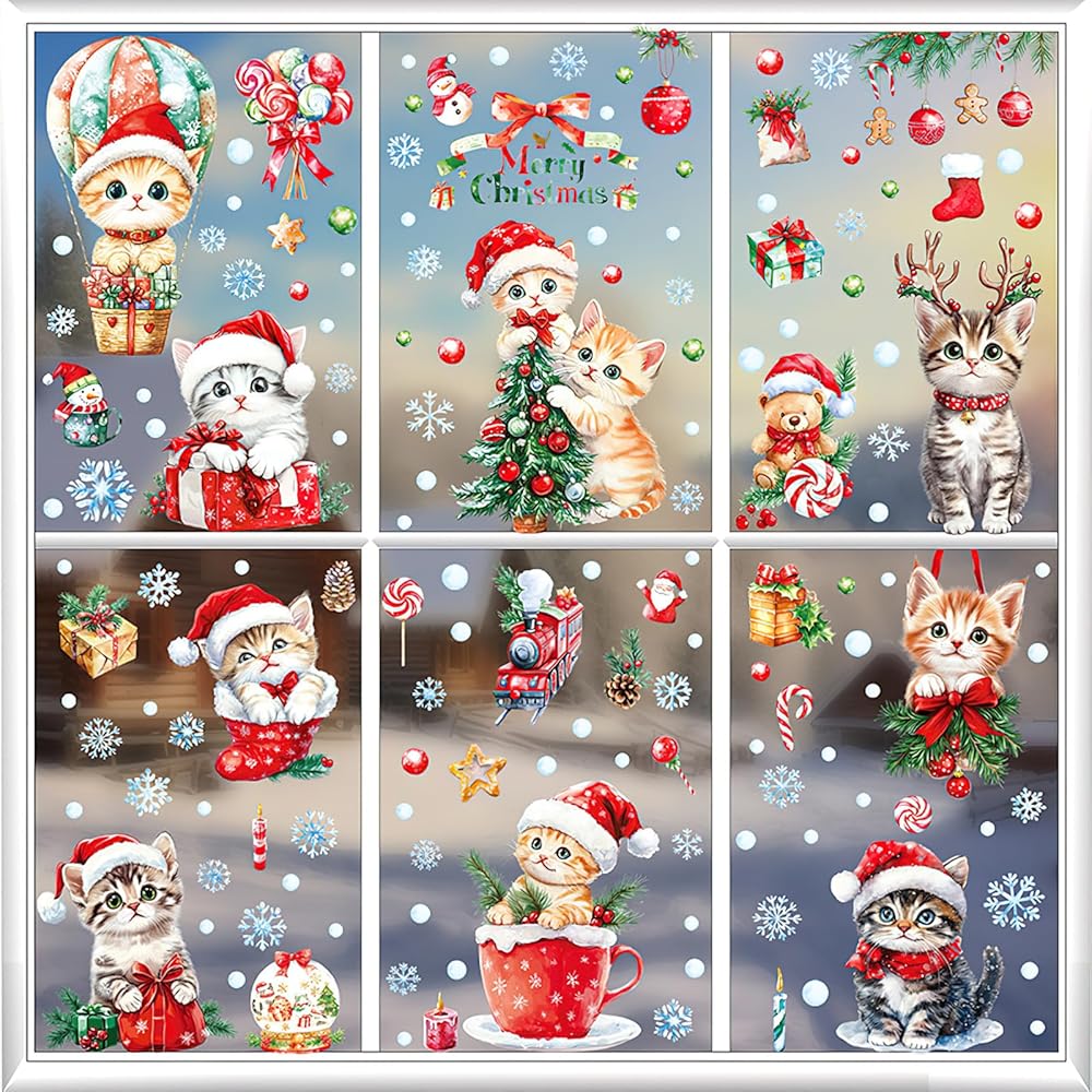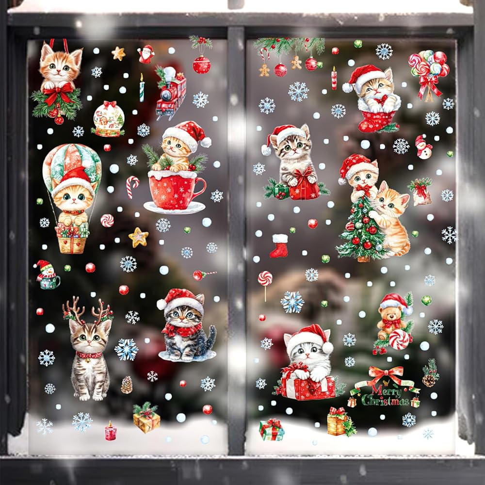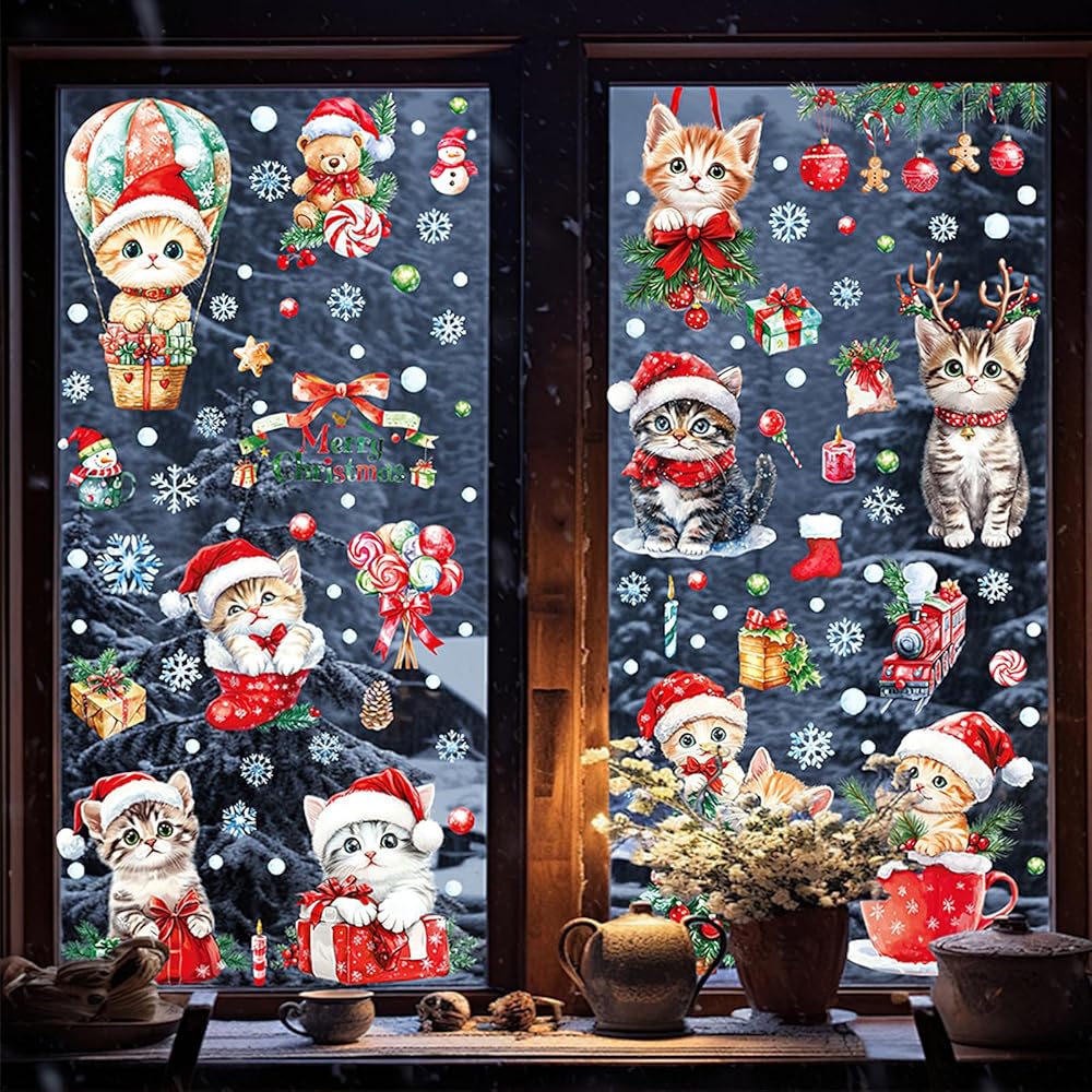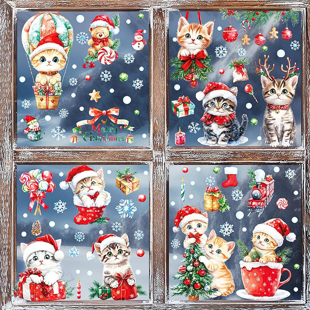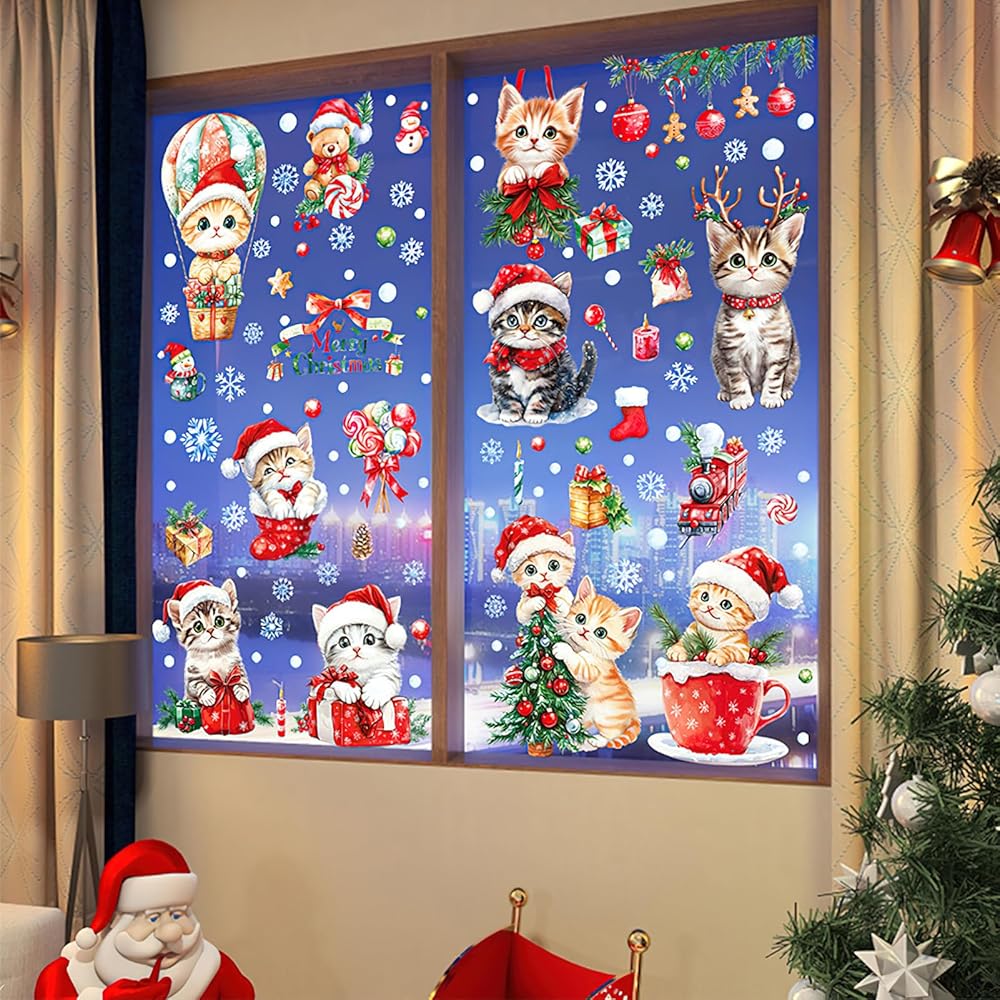 • Window Clings Set : the package includes 9 sheets of Christmas cat window clings, which are well packaged during the transportation process and sufficient quantity can meet your home decor needs