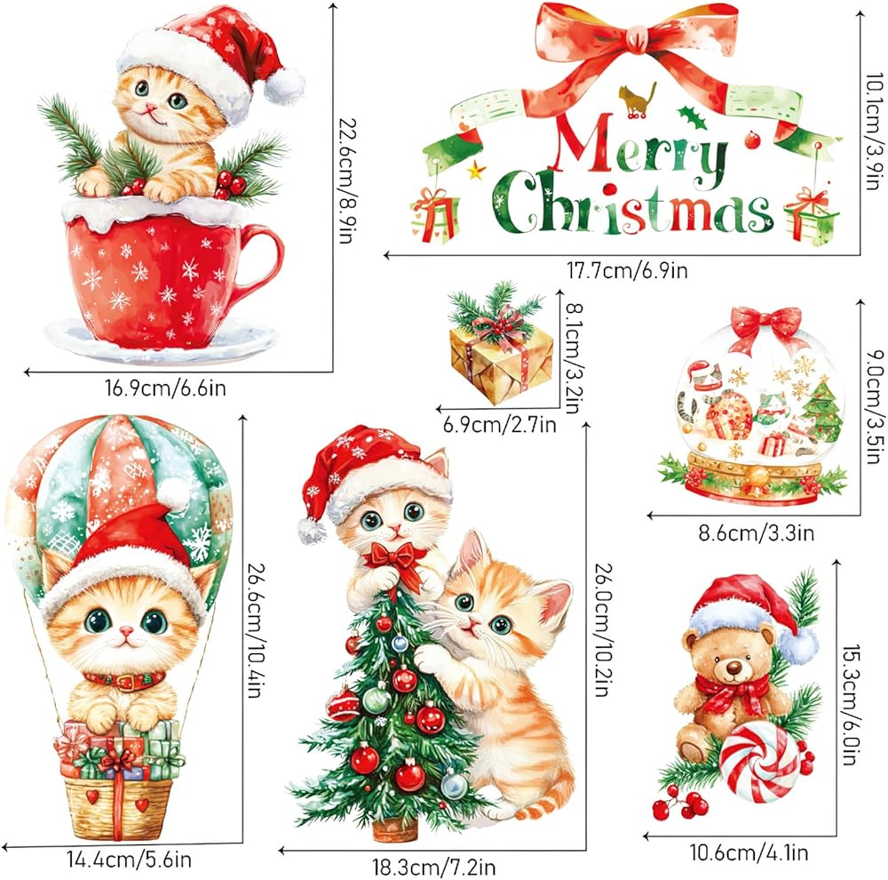Colorful Cute Christmas Themed Prints---The window stickers are designed with full of snowflake xmas trees cat in multi-color. Festive addition to your home decoration in Christmas season.
