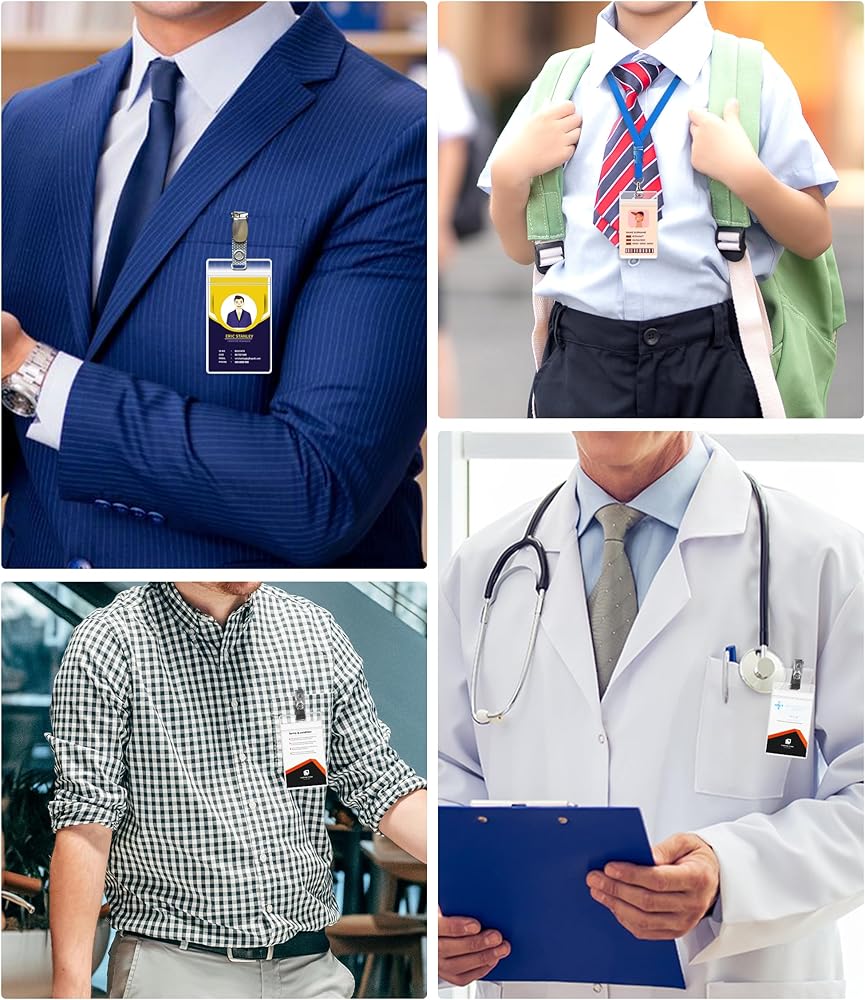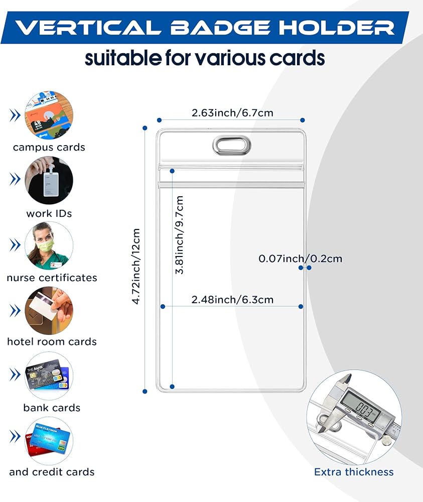 [المقاس] يبلغ حجم حامل شارة الهوية 4.5 بوصة × 2.7 بوصة (11.5 × 6.8 مم)، مناسب لمختلف البطاقات مثل بطاقات الحرم الجامعي، وبطاقات العمل، وشهادات الممرضة، وبطاقات غرف الفندق، والبطاقات المصرفية، وبطاقات الائتمان. يمكن استخدامه في مجموعة واسعة من المناسبات مثل السفر ومؤتمرات العمل والمعارض والفنادق والرحلات البحرية.
