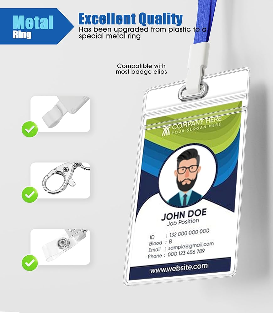 [مقاوم للماء والغبار] حامل الشارات مجهز بتصميم شريط ذاتي الغلق مقاوم للماء، يمنع بشكل فعال اختراق المياه ويوفر الأمان للمستندات المهمة مثل بطاقات الهوية، وبطاقات العمل، وبطاقات الطلاب، وبطاقات عمل الممرضة، وبطاقات الائتمان، وبطاقات العضوية، والمعارض. بطاقات، الخ.