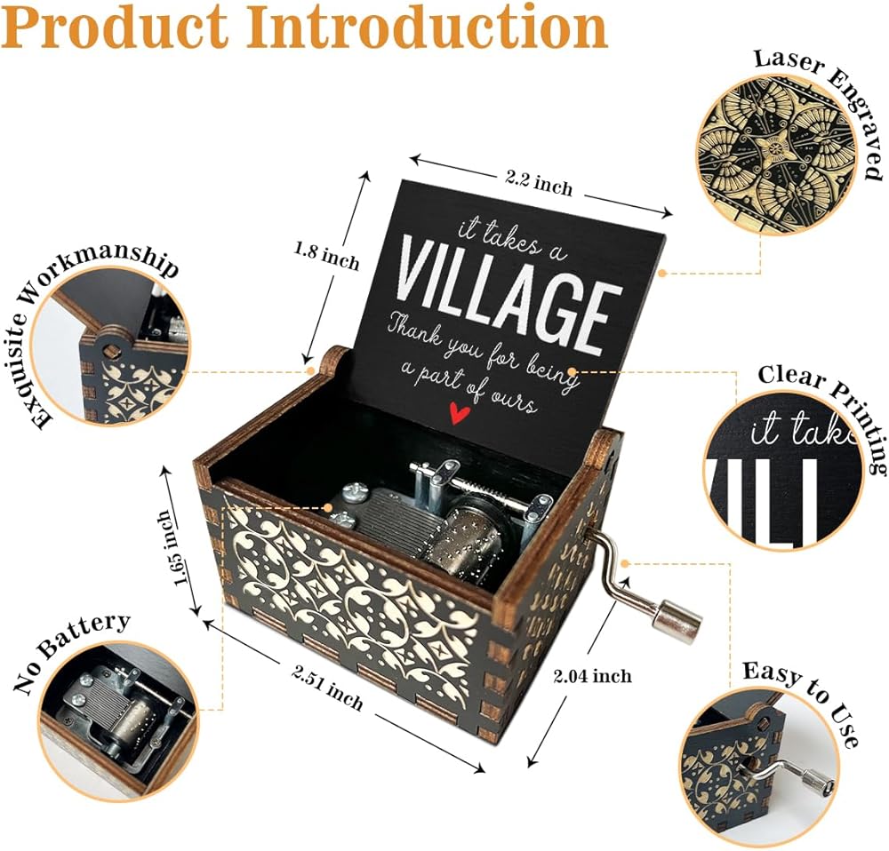 • Thoughtful and Timeless: This wooden music box can serve as a timeless gift. Engraved words inside the music box express a Heartwarming Love, making it a perfect sentimental gift. Open the lid of the music box, you will see the colorful printed pictures and warm words. So easy and Delightful