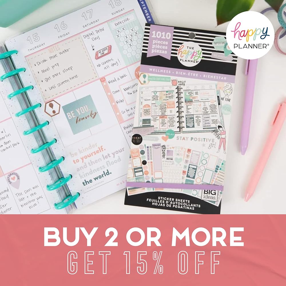 AT A GLANCE: Each sticker book includes 30 pages with colorful boxes, memos, quotes, and classroom related icons. Our Happy Planner Sticker Pack is great for planners, notebooks, and journals. With everything from matte paper stickers for writing memos to inspirational quote stickers, you can make your writing space your own.
