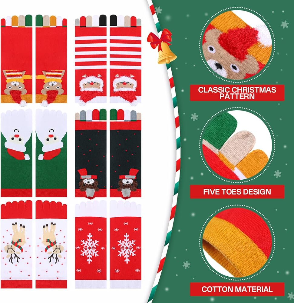 • Enough for Daily Use: you will receive 6 pieces of Christmas toe socks with different colors, rich in style and abundant in quantity, which are sufficient and various for you to wear; You can wear in your daily life or in Christmas Day, convenient for you to use or replace, sufficient to meet your daily needs