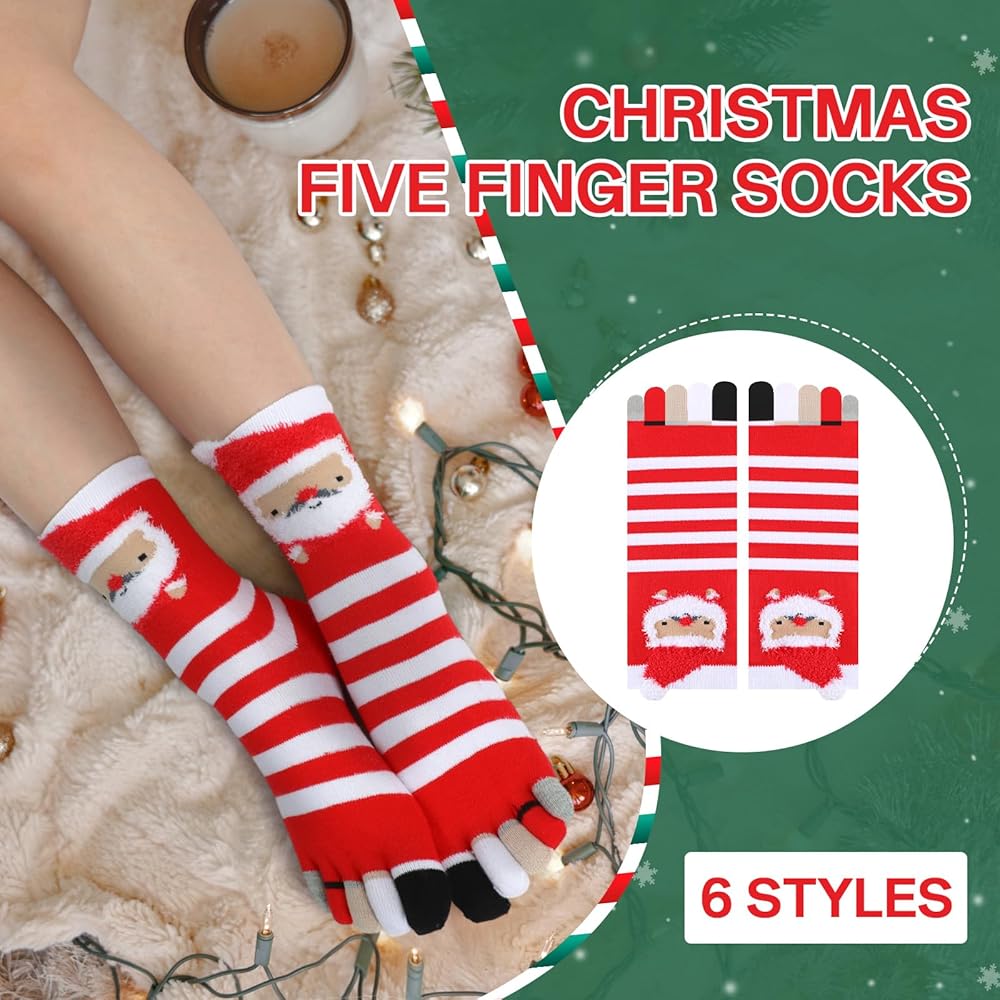 6 Pairs of Christmas toe socks