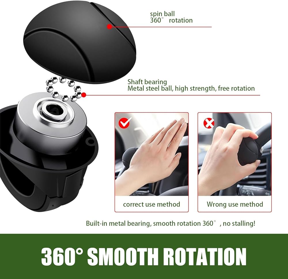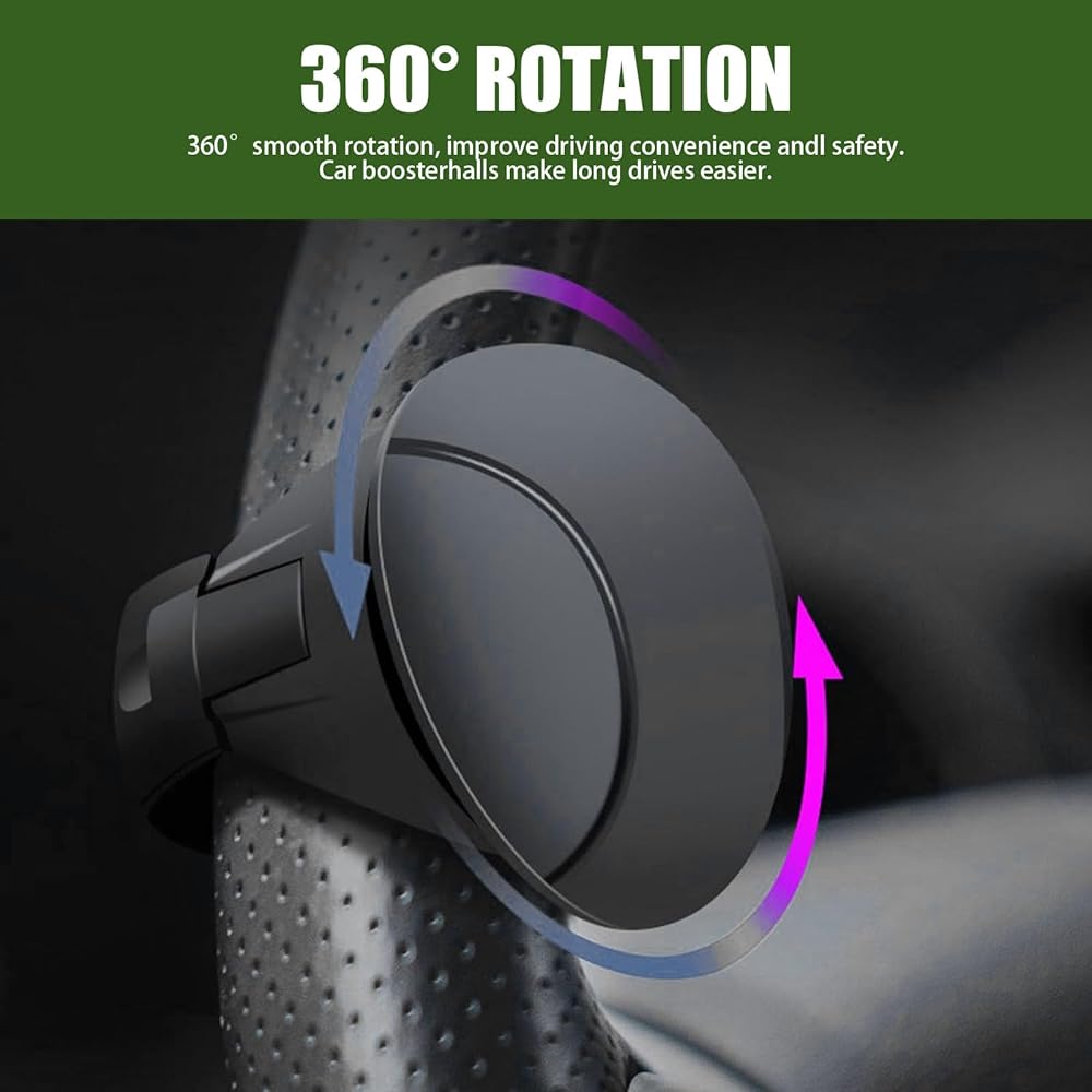 360 Degree Rotation: The steering wheel booster has built-in metal bearings that can rotate freely 360 degrees, smoothly and without making any noise. It assists the driver in adjusting the direction of the car, reduces the driver's effort to turn the steering wheel, assists power steering, and improves driving convenience and safety.