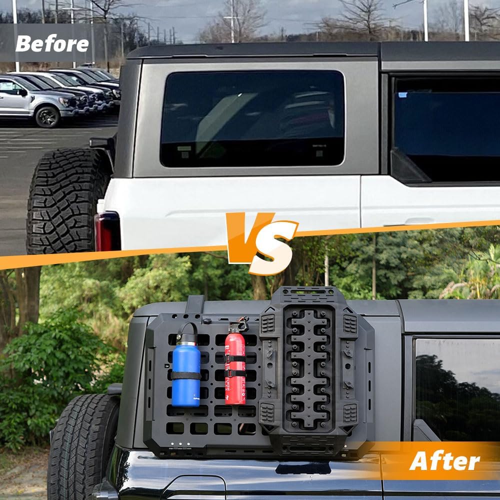 ملاءمة مثالية: متوافقة مع 2021-2024 Ford Bronco 4 Door (Hardtop)، توفر لوحة تخزين النافذة الخلفية هذه مظهرًا تكتيكيًا سلسًا يمتزج بشكل مثالي مع الجزء الخارجي لسيارتك. يوفر تصميمًا مخصصًا على طراز OEM ويمكن تركيبه على كلا الجانبين.