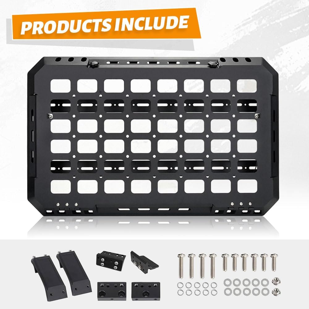 توسيع مساحة التخزين: قم بزيادة سعة التخزين الخاصة بك إلى أقصى حد مع لوحة Molle متعددة الاستخدامات هذه؛ يوفر مساحة تخزين إضافية لعناصر مثل معدات التخييم واللوازم الخارجية والأدوات؛ يزيد من سعة الشحن في سيارتك لتعزيز المرونة والراحة.