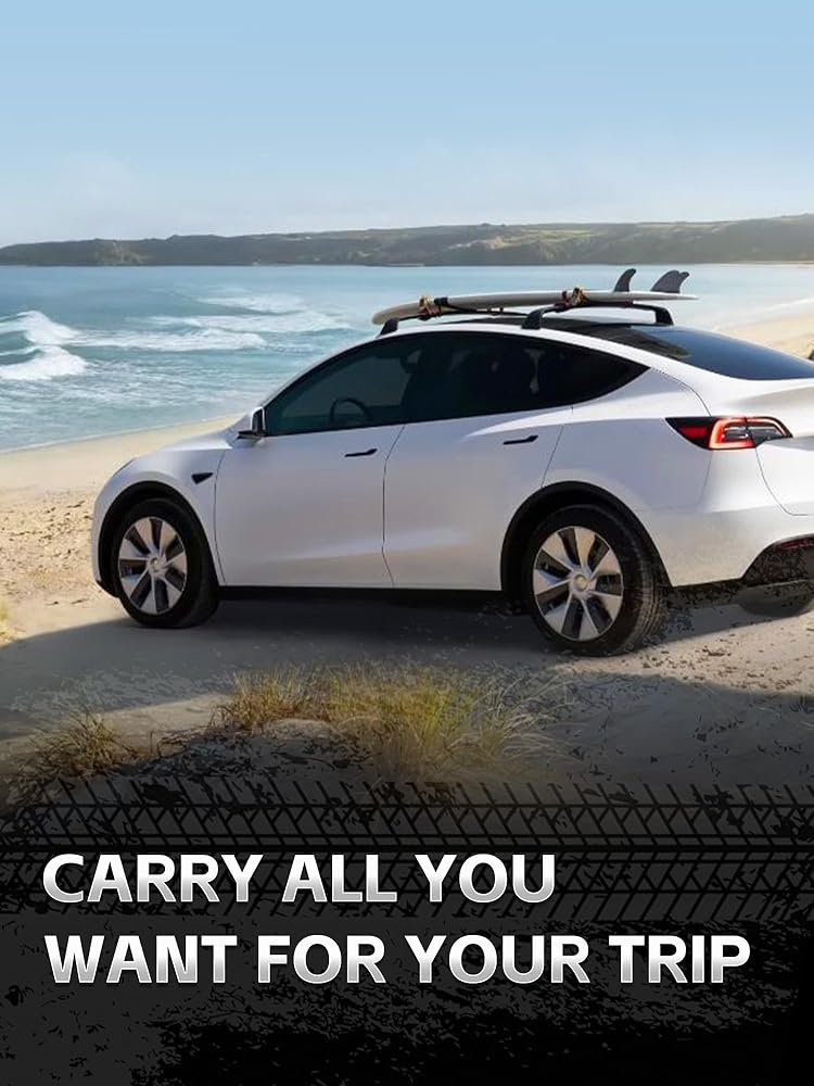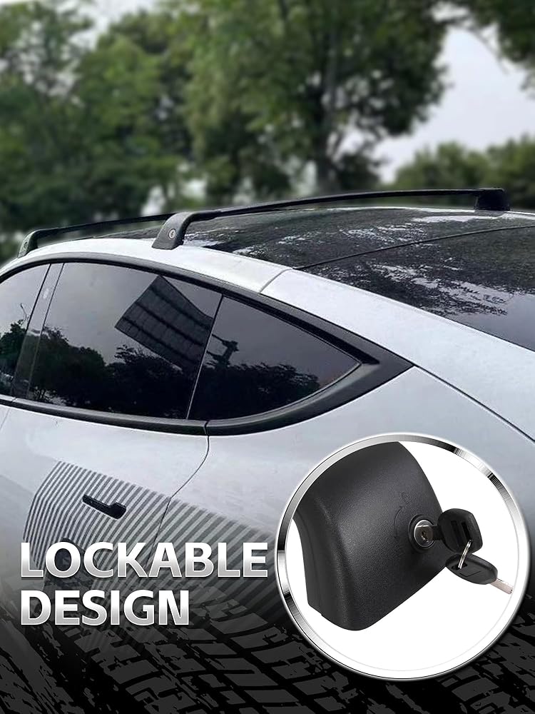 رف سقف قابل للقفل بدون ضوضاء يناسب طراز Tesla Y 2020 2021 2022 2023 2024 شريط متقاطع جميع الألومنيوم لدراجة الكاياك العارضة على السطح حامل الأمتعة لرف الزورق