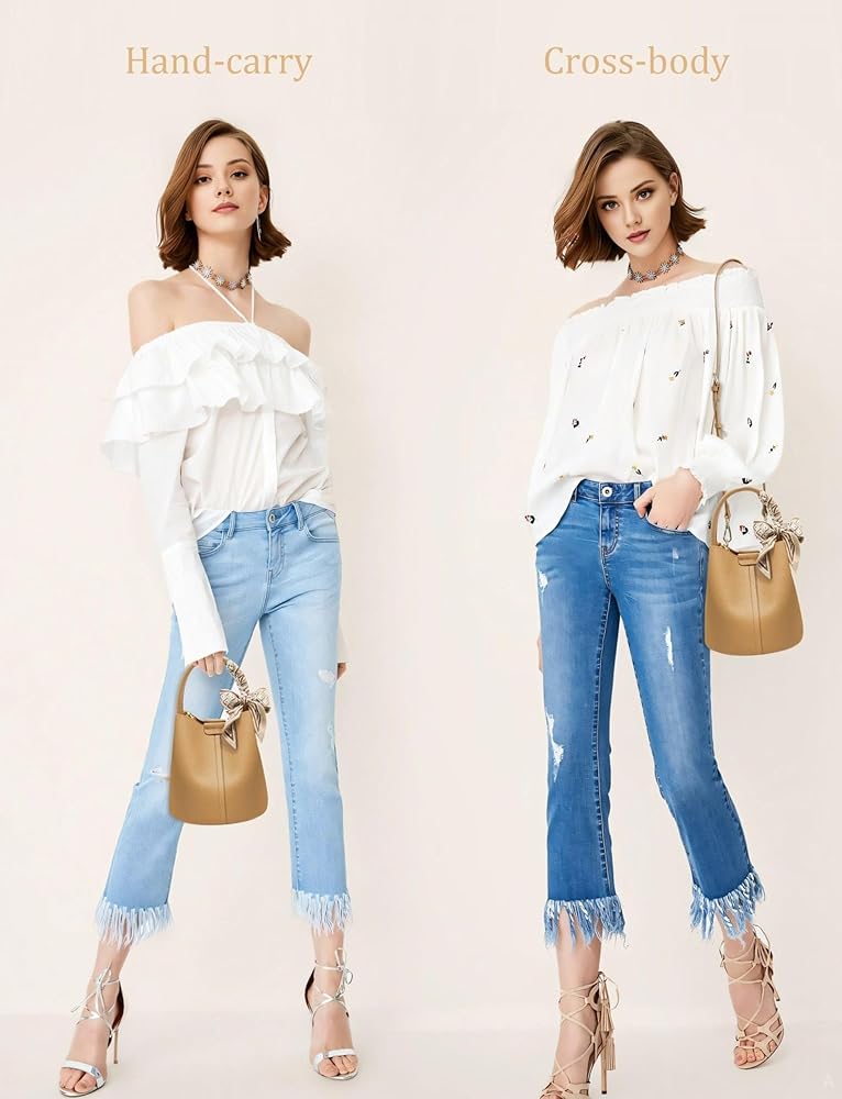 خيارات حمل متعددة الوظائف: تعدد الاستخدامات يلبي الراحة مع خيارات الحمل المزدوجة لحقيبة اليد هذه. احمليها يدويًا للحصول على مظهر أنيق أو اربطي حزام الكتف القابل للفصل والتعديل لتجربة بدون استخدام اليدين. مناسبة لجميع أنواع المناسبات، كما أنها هدية مدروسة وفاخرة لأي امرأة تقدر الأسلوب الخالد والعملية.