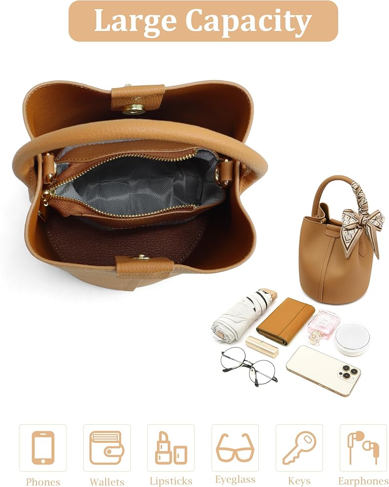 تصميم أنيق على شكل دلو: ارفع أناقتك اليومية مع حقيبة يد FOXLOVER المصنوعة من جلد البقر الفاخر. يضيف تصميمه الفريد لمسة من الأناقة إلى أي ملابس، مما يجعله إكسسوارًا متعدد الاستخدامات للمناسبات غير الرسمية والرسمية.