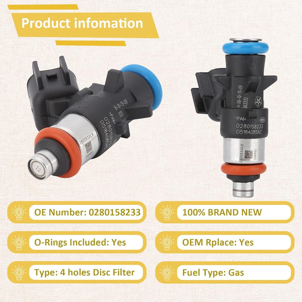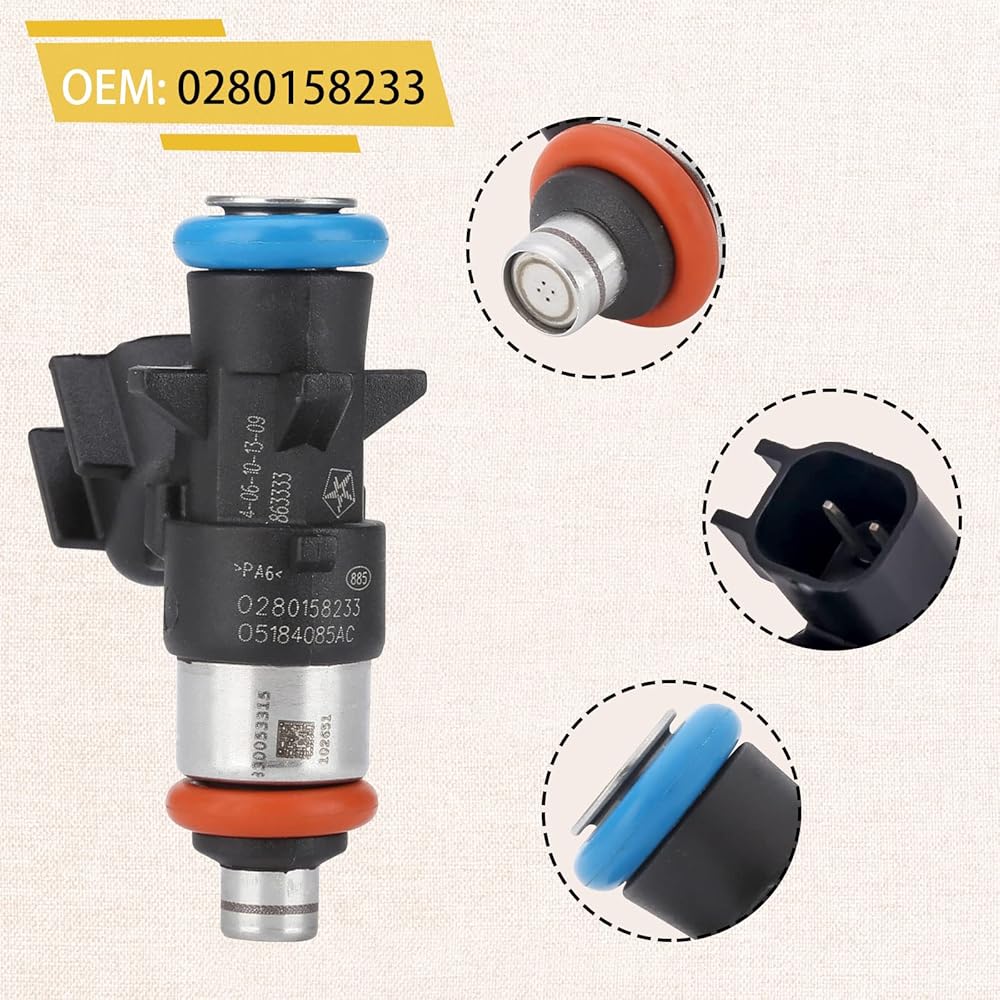 • [رقم OE] - تم اختبار حاقن الوقود لضمان التركيب والأداء الخالي من المتاعب (من الطبيعي أن تترك الأجزاء المختبرة كمية صغيرة من البنزين، فلا تتردد في تركيبها واستخدامها). استبدل OE# 5184085AC,5184085AD ,0280158233.