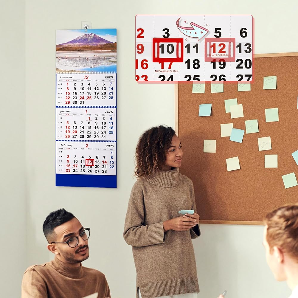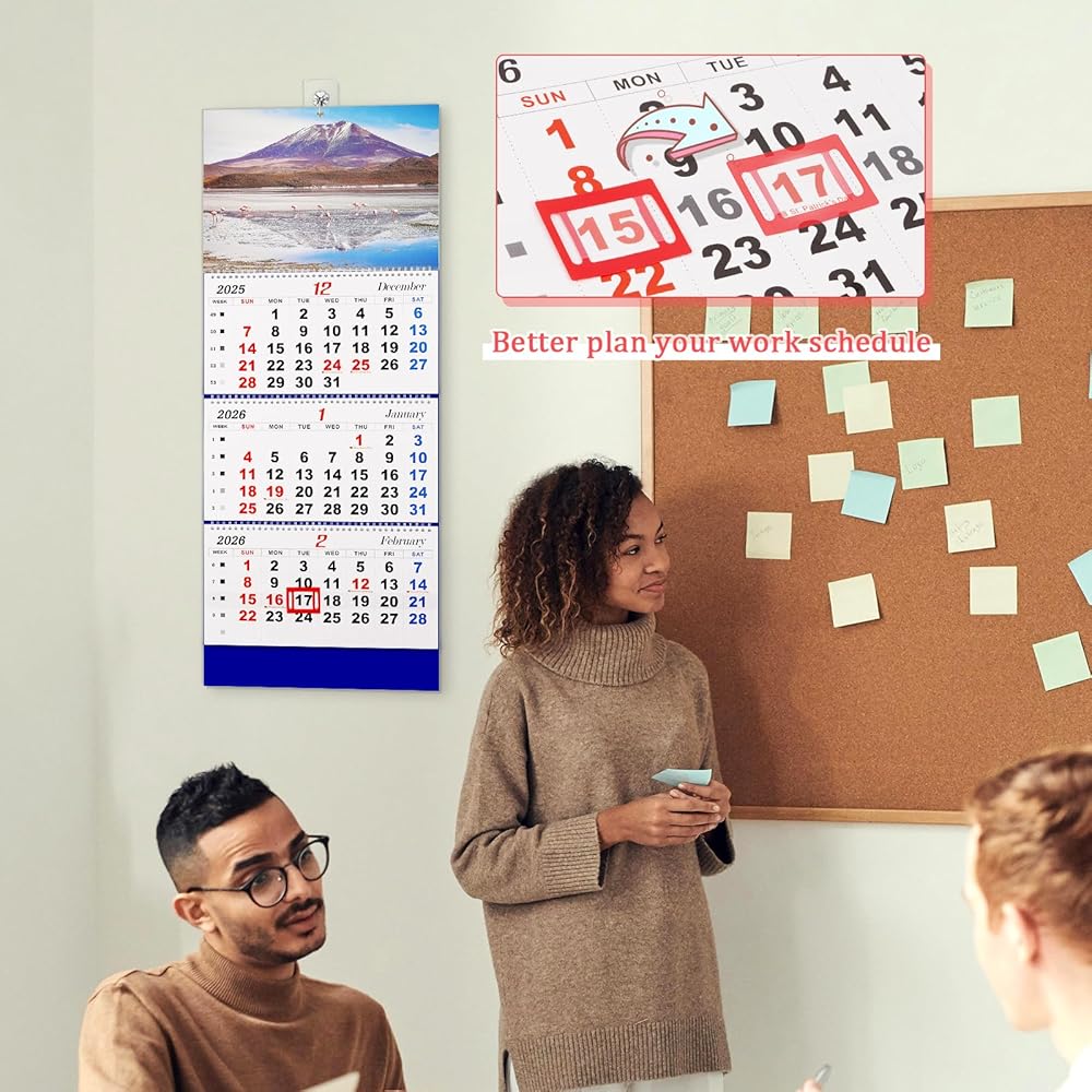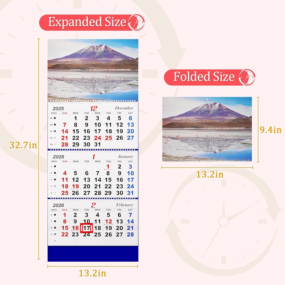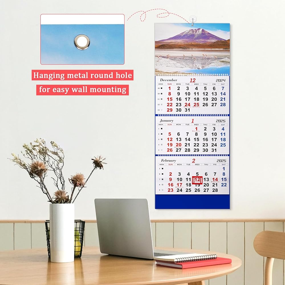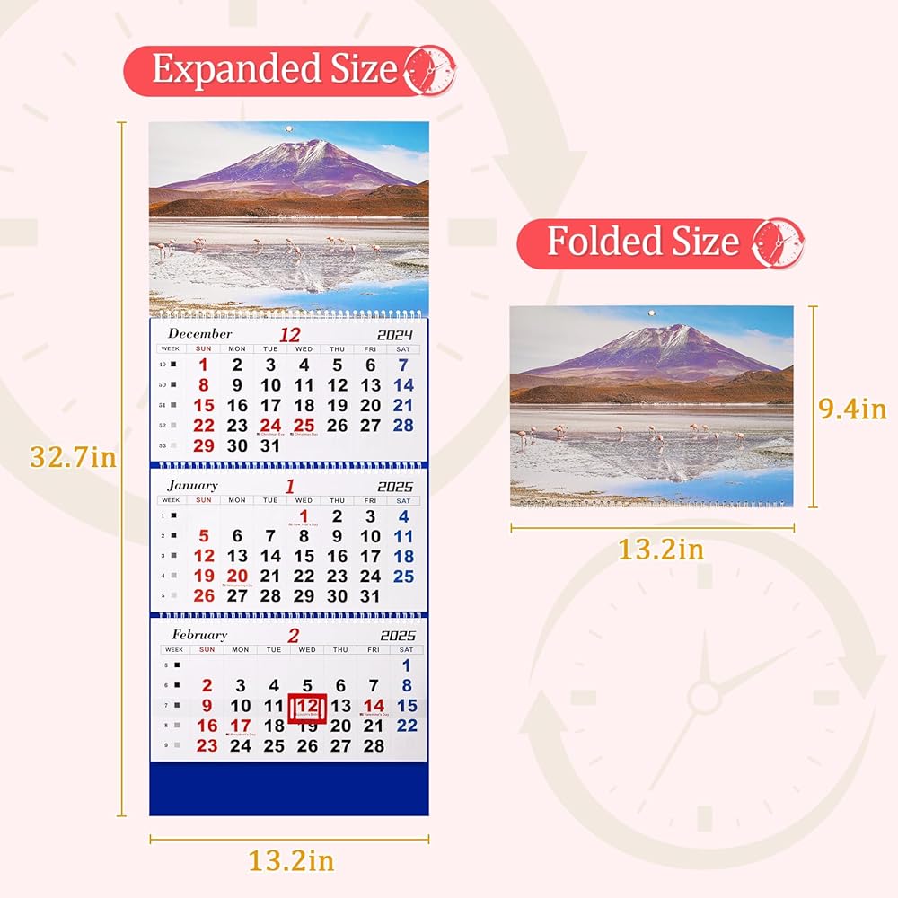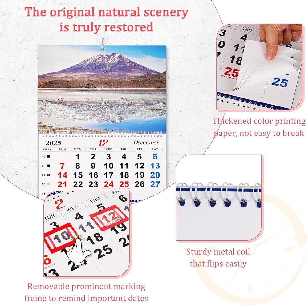 قابلة للطي - ورق تقويم الحائط الخاص بنا لعام 2025 مقاوم للحبر ومصمم لتجنب الريش. تقويم الحائط ثلاثي الطي ذو طابع جوي وجميل، ويمكن استخدامه في أماكن مثل المنزل أو المدرسة أو المكتب.