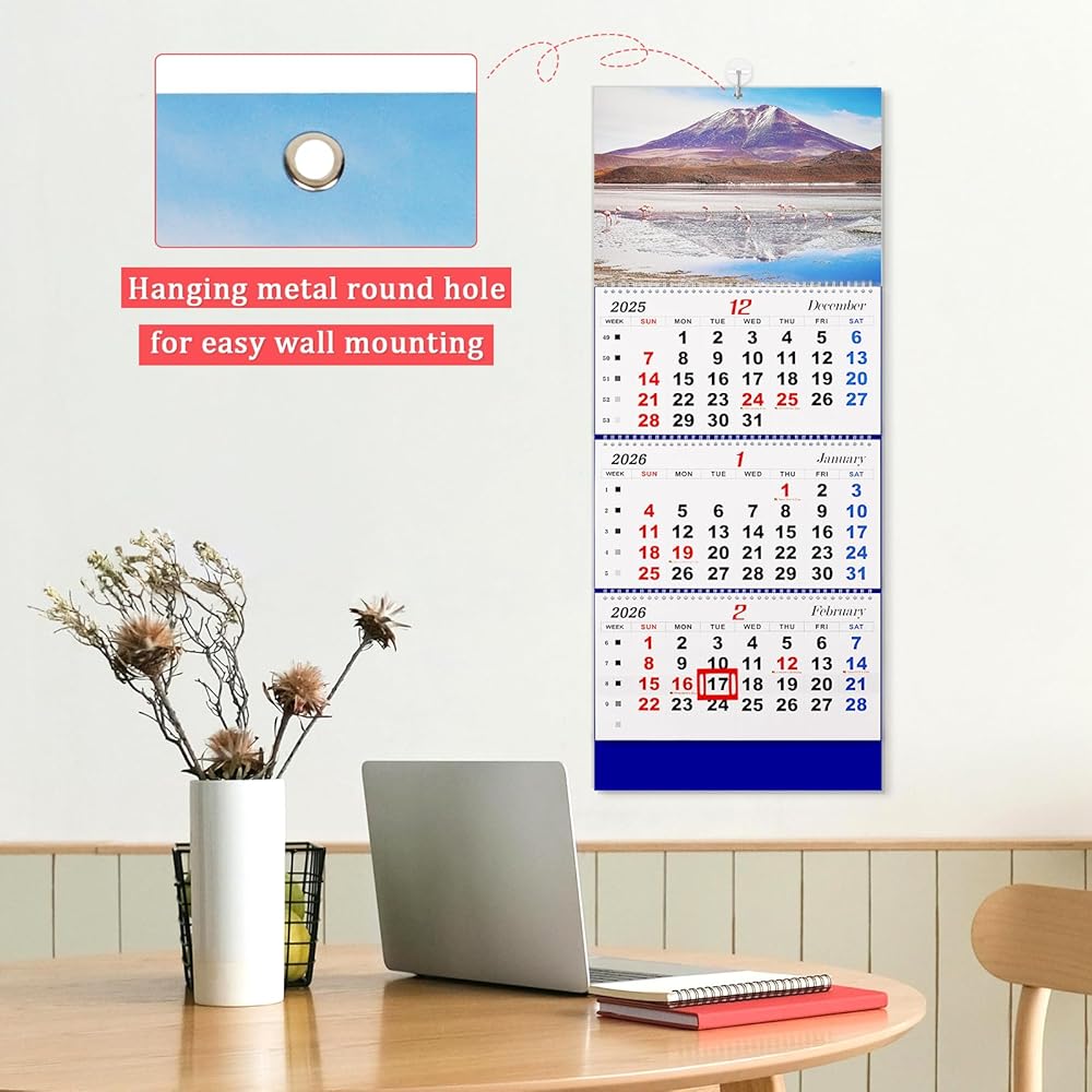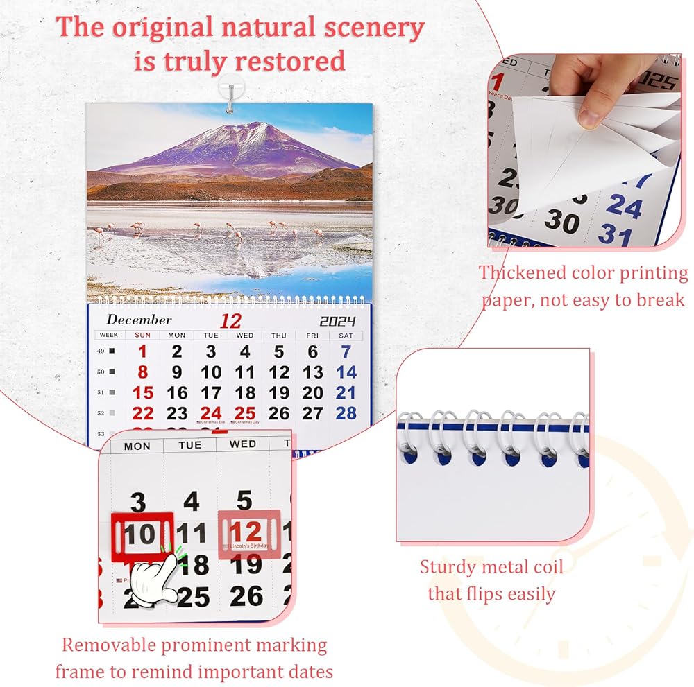 وظائف غنية - تصميم التعليق للحلقة المعدنية متين ولن يسقط. تحتوي تقاويمنا الشهرية على حلقات فردية لكل شهر حتى يسهل تمزيق الصفحات وطيها دون تجاعيد.