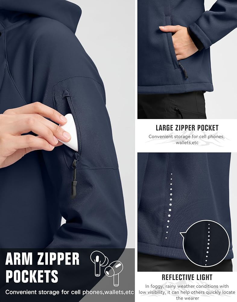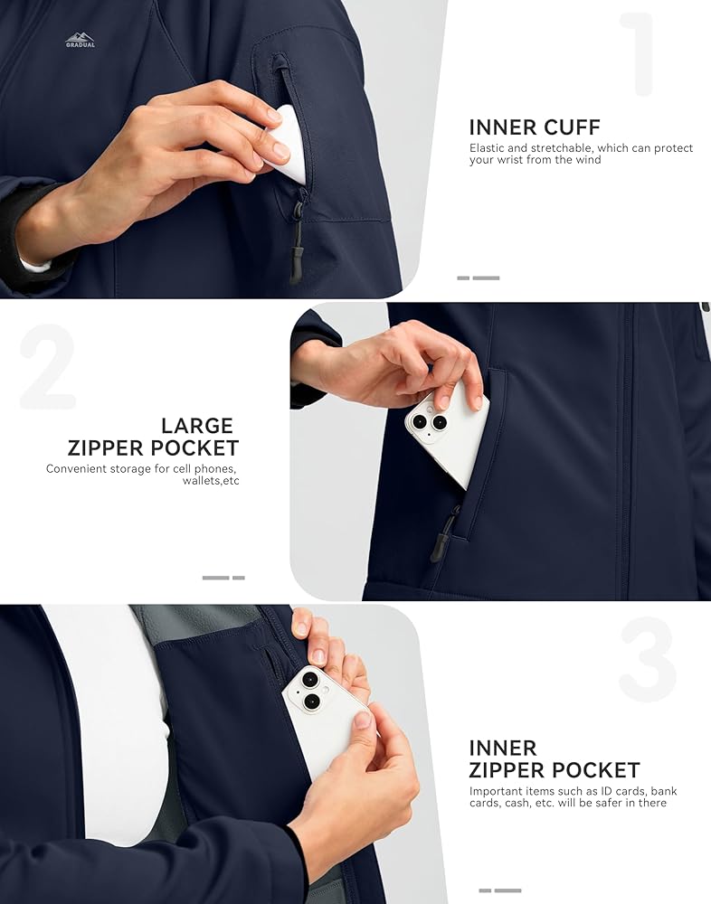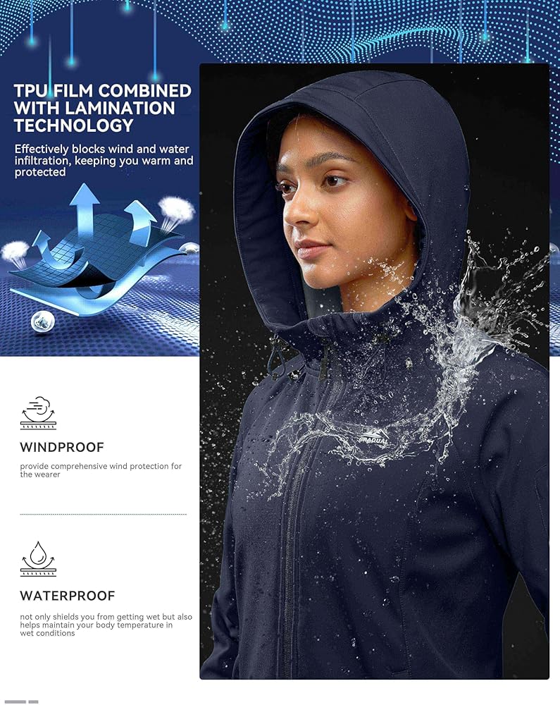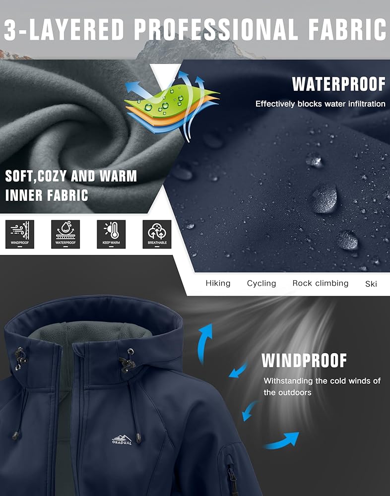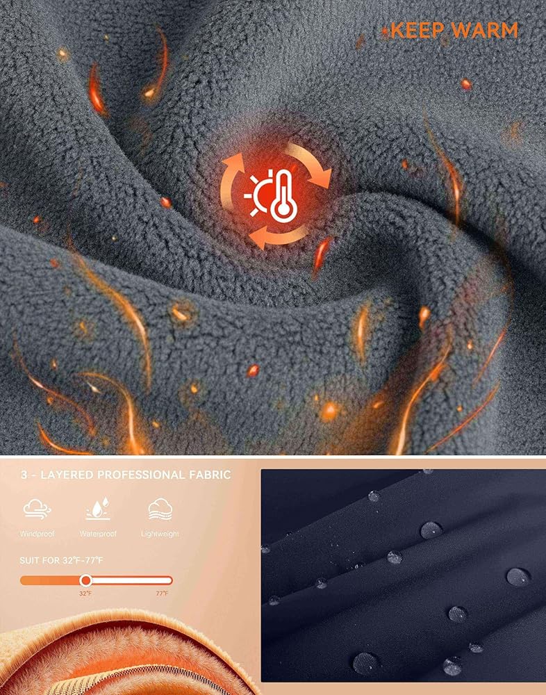 3 - نسيج احترافي متعدد الطبقات: سترة ناعمة مصنوعة من طبقة TPU جنبًا إلى جنب مع تقنية التصفيح، تمنع تسرب الرياح والمياه بشكل فعال، مما يبقيك دافئًا ومحميًا