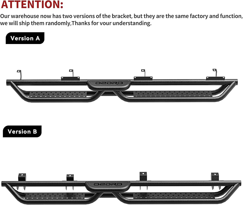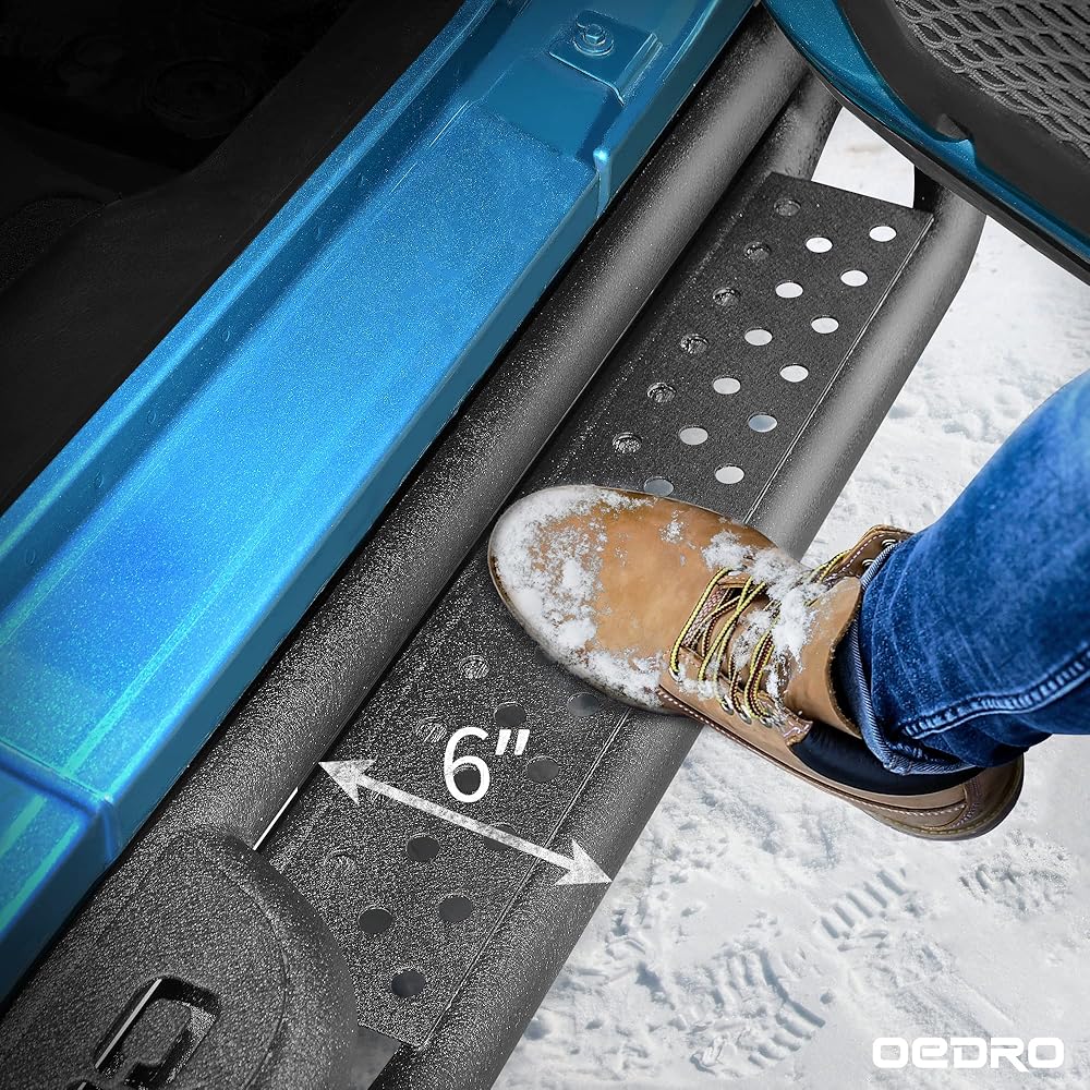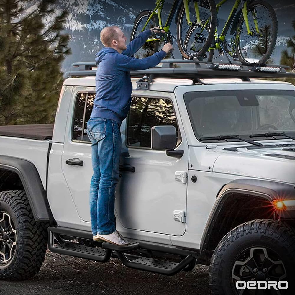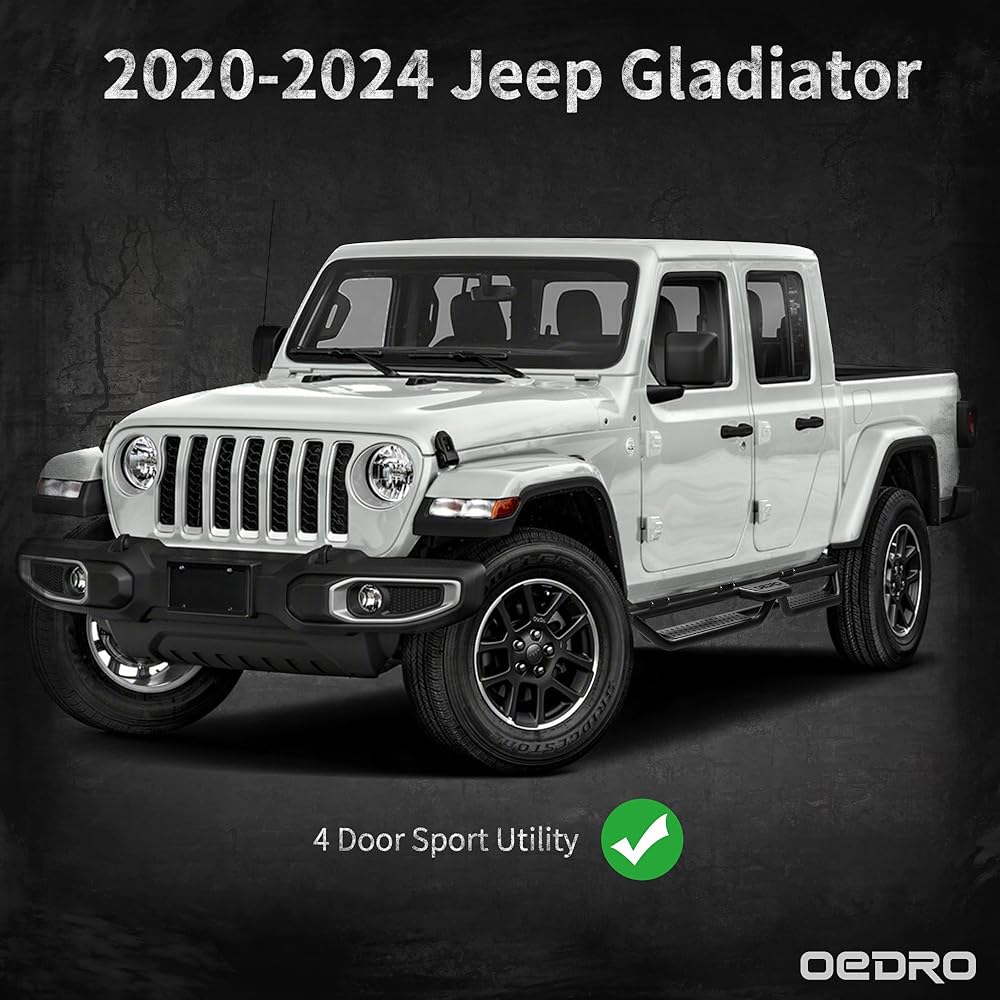 الملاءمة: تتميز قضبان الخطوات OEDRO بتصميم مميز منسدل متوافق تمامًا مع 2020-2024 Jeep Gladiator JT 4 Door.