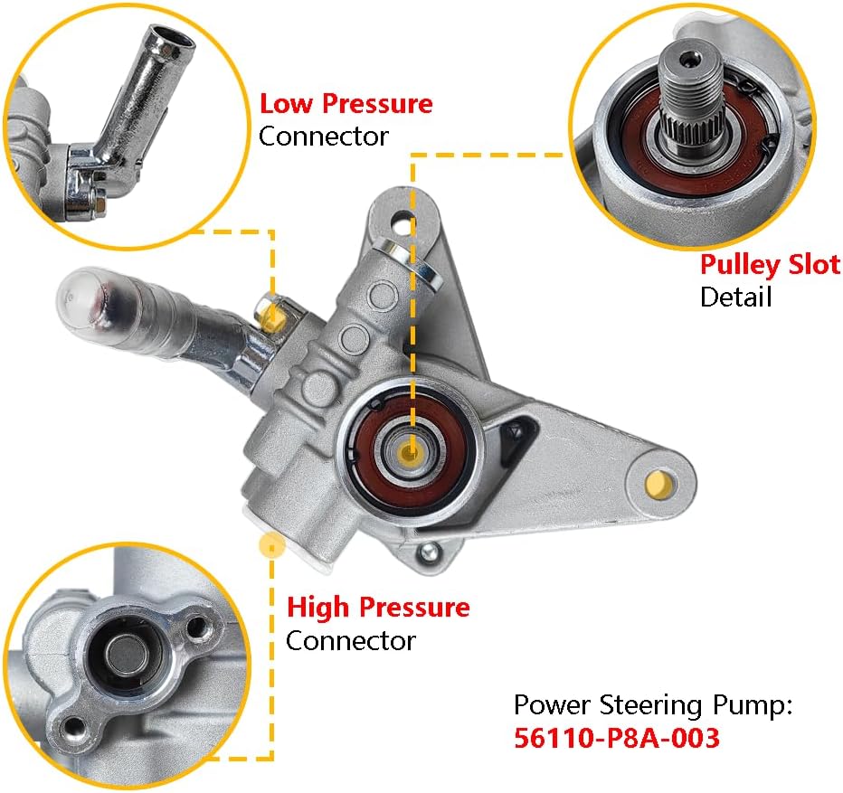 Power Steering Pump, directs power steering fluid from the reservoir into the steering gear, which applies the correct amount of pressure to turn the wheels smoothly. If you have symptoms like whining noise while turning the wheel, steering wheel slow to respond, stiff steering wheel, or squealing & groaning noises when the vehicle starts, you might need to replace your old Power Steering Pump.