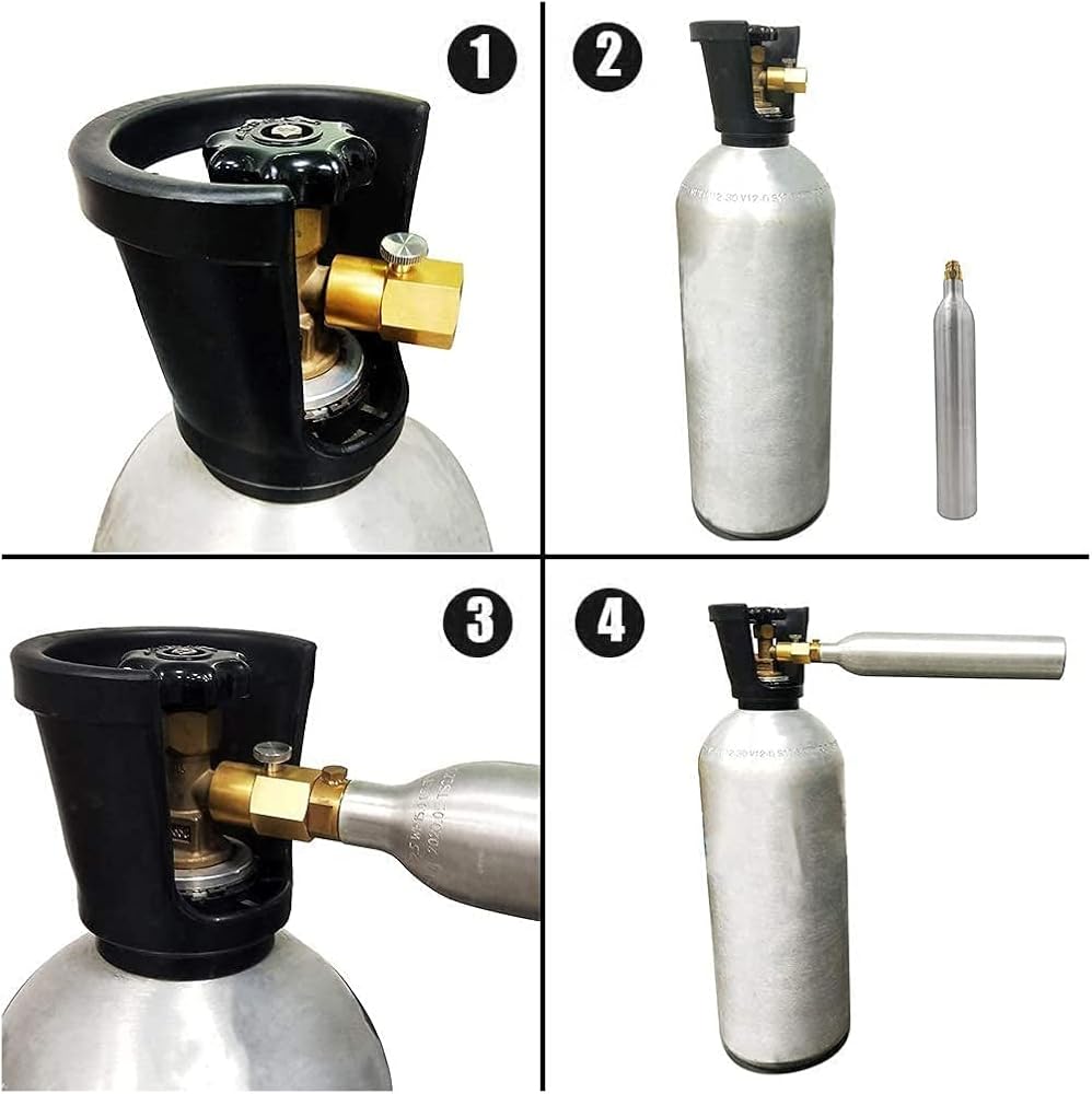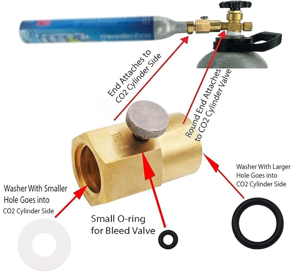 - سيمكنك محول تعبئة الأسطوانة سهل الاستخدام هذا من ملء ثاني أكسيد الكربون الخاص بك من الأسطوانة الكبيرة الكبيرة إلى أسطوانات أصغر.