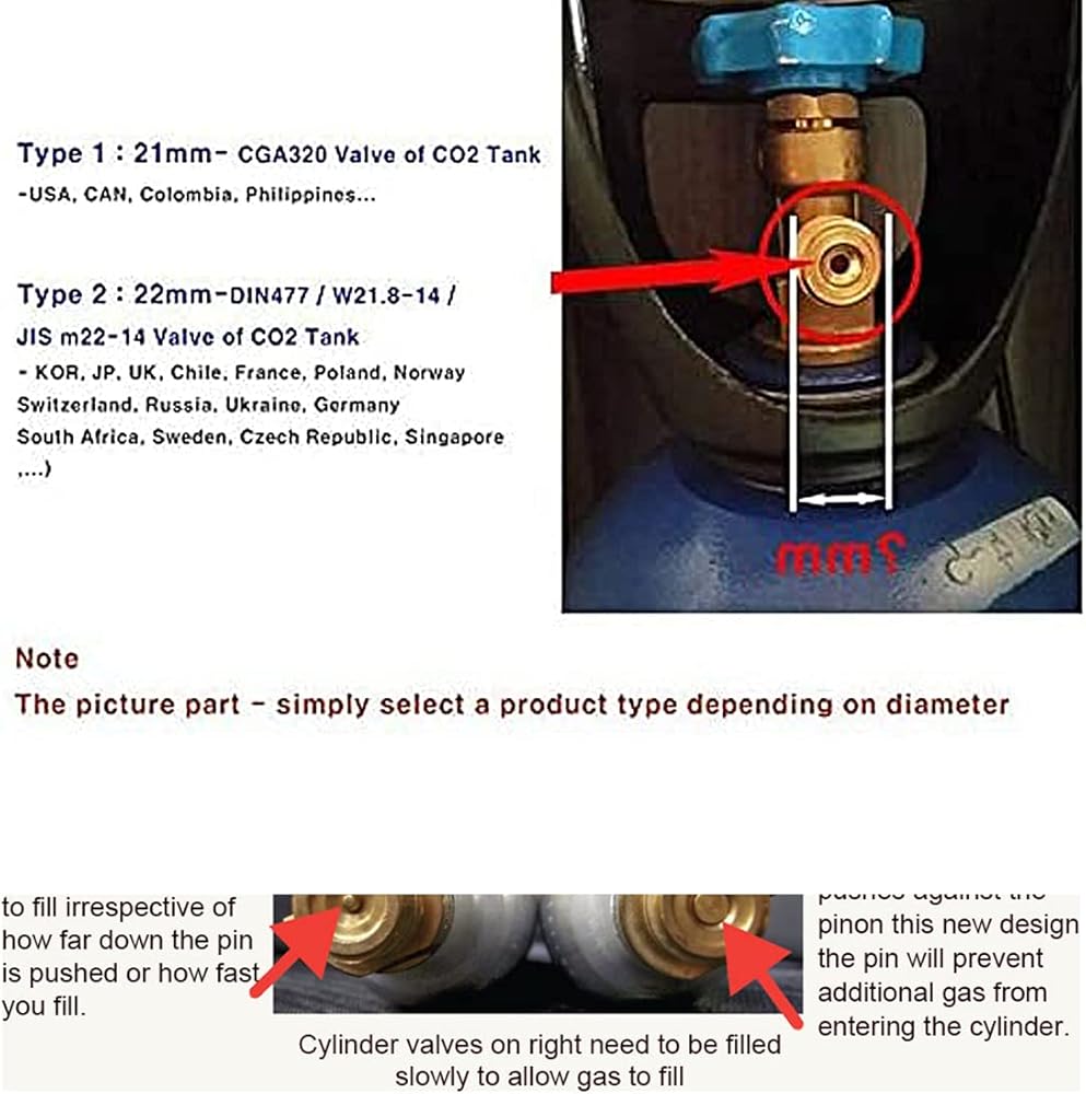 المزايا: يمكن لأسطوانة المحول هذه ملء ثاني أكسيد الكربون من الأسطوانات الكبيرة إلى زجاجات الصودا الأصغر. إنها طريقة سهلة وغير مكلفة لملء زجاجة الصودا في المنزل. وتكلفة شراء الصودا من المتجر المحلي. (أوروبا: W21.8-14). (لا ينطبق على خزان ثاني أكسيد الكربون مع مفصل CGA320)