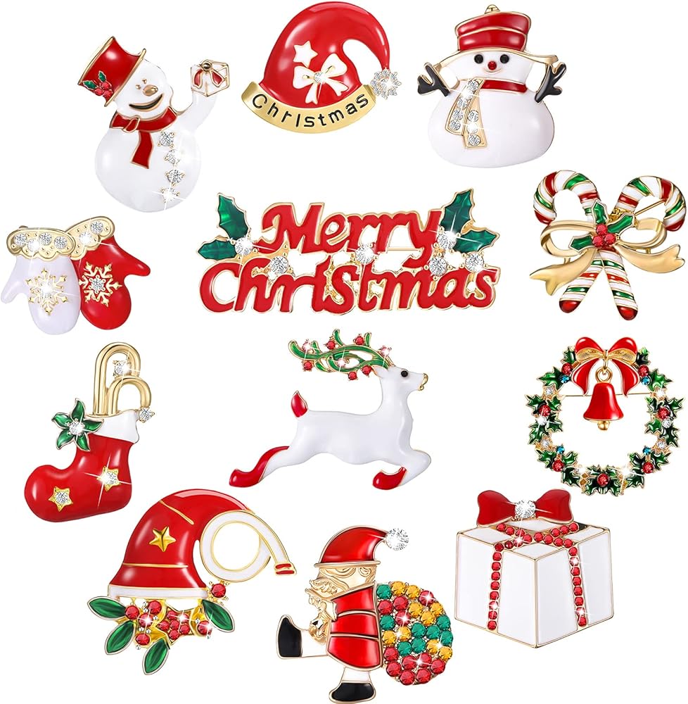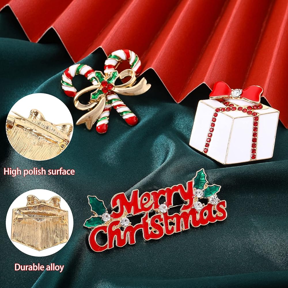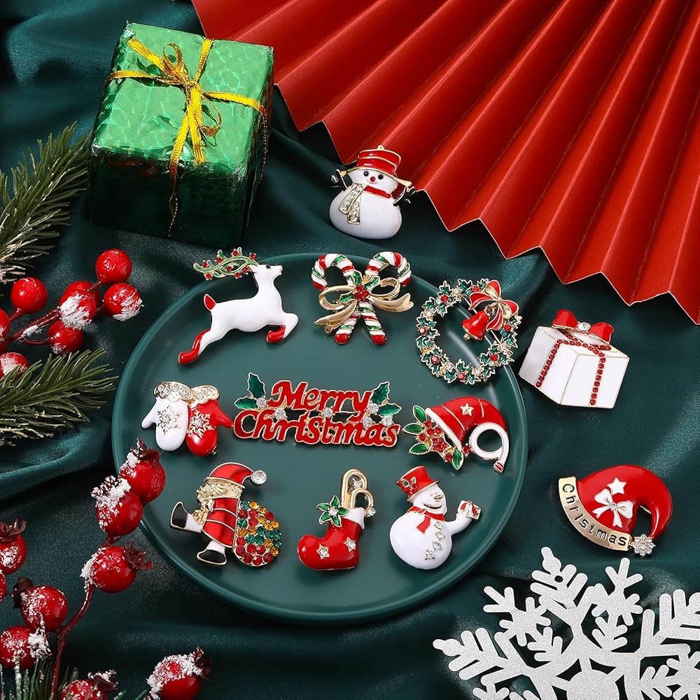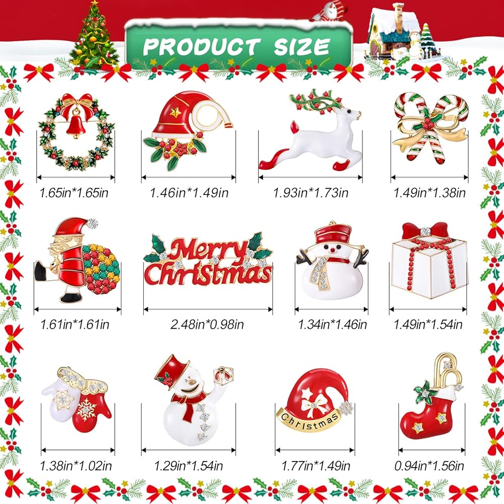 ما ستحصل عليه: سوف تحصل على 12 قطعة من دبابيس بروش عيد الميلاد بأنماط مختلفة، والكمية الكافية والأنماط المختلفة يمكن أن تلبي احتياجاتك المختلفة للديكور وتمنحك أجواء احتفالية مختلفة، يرجى الاستمتاع بسحر هذه الدبابيس