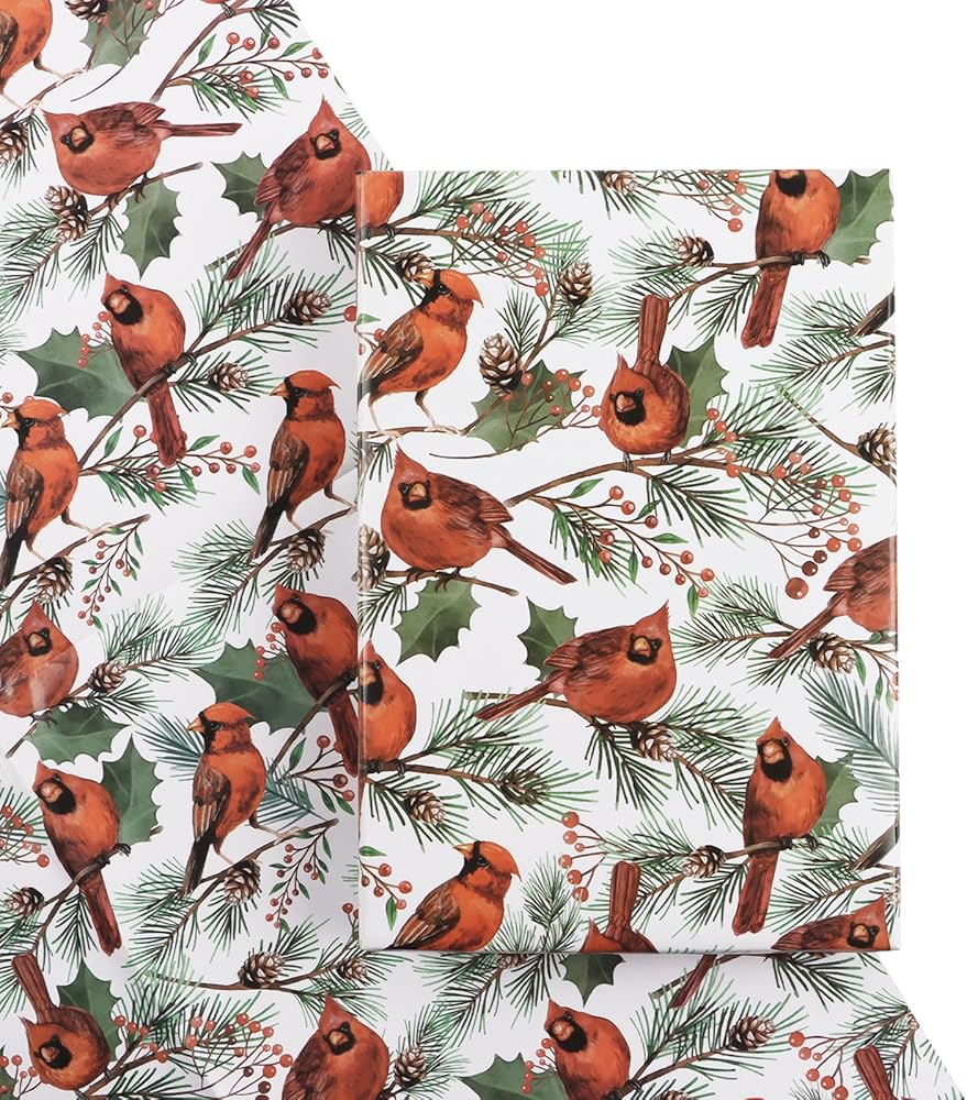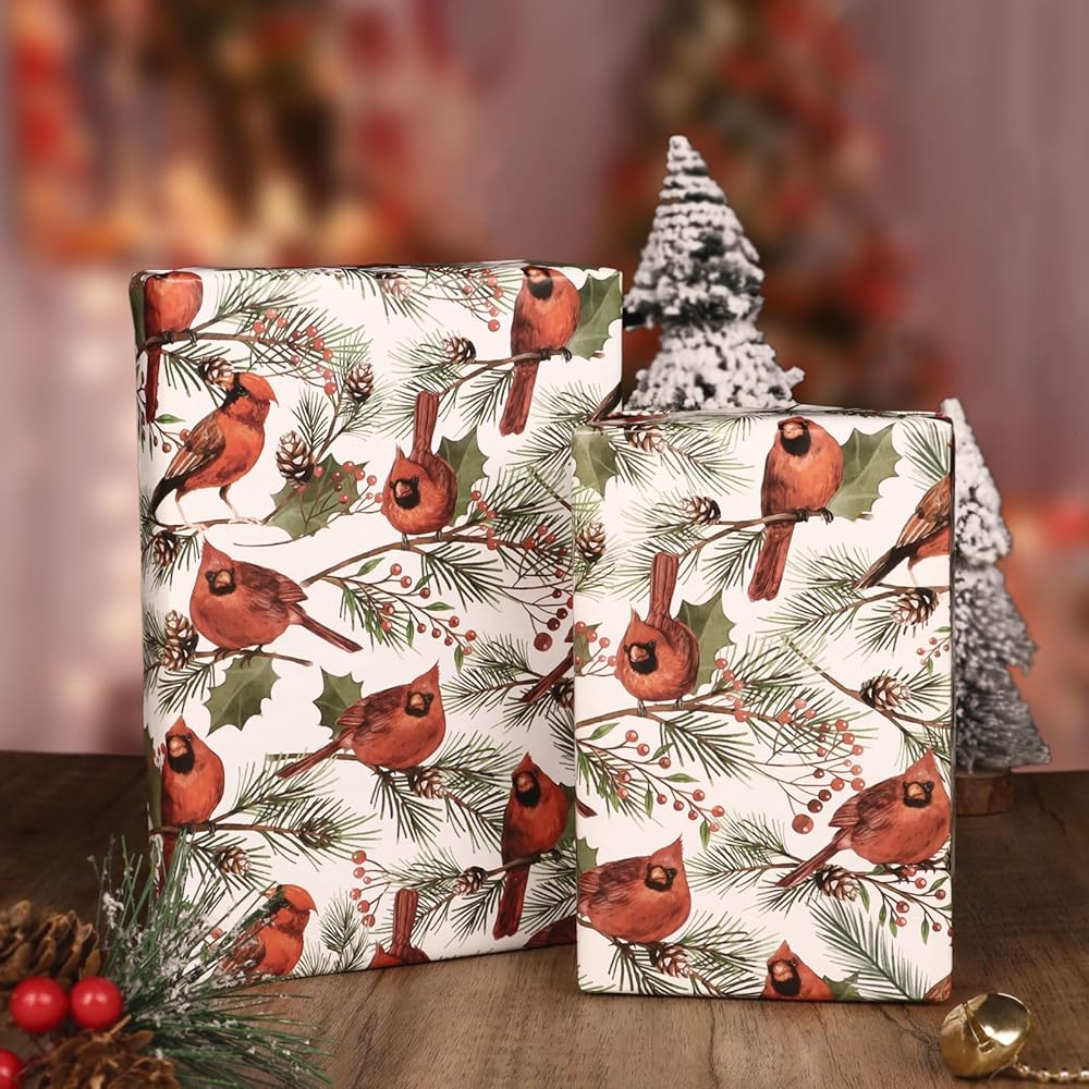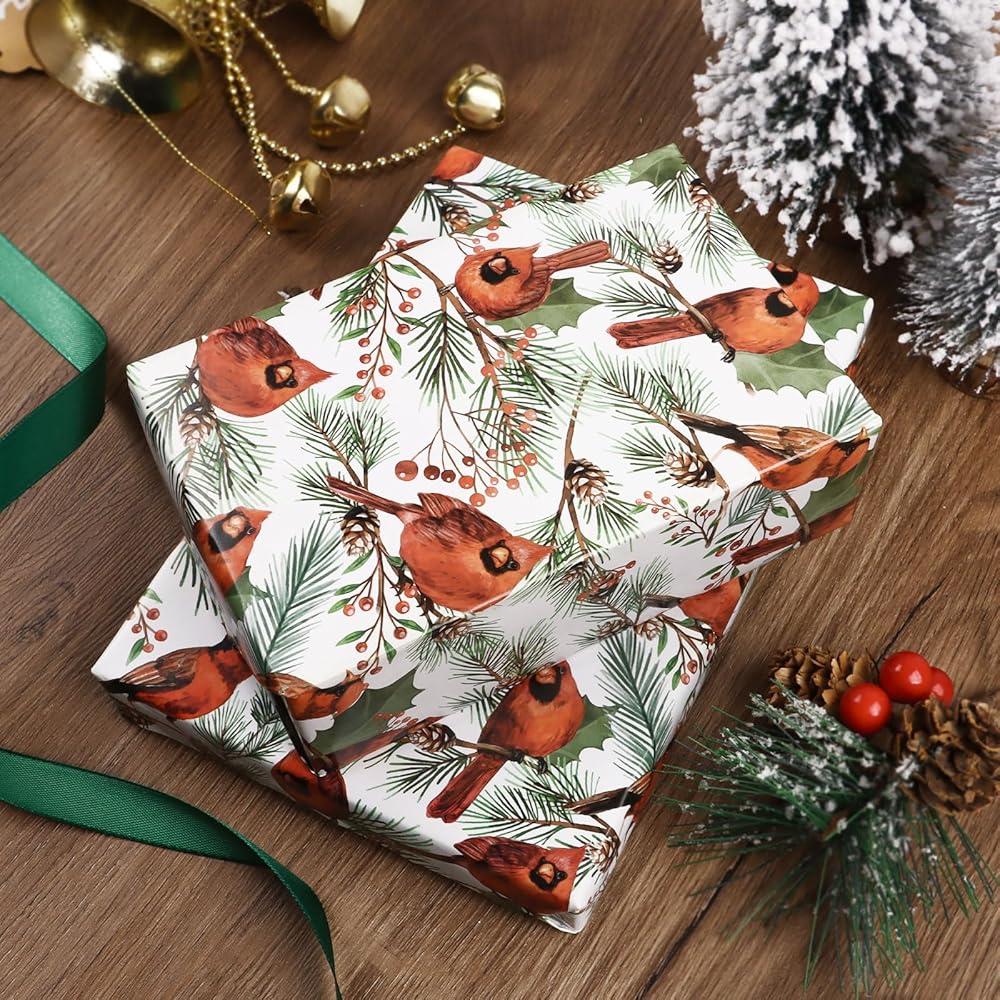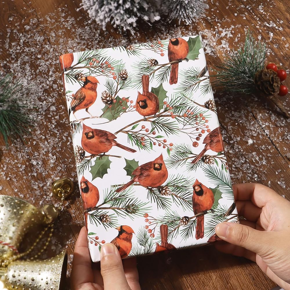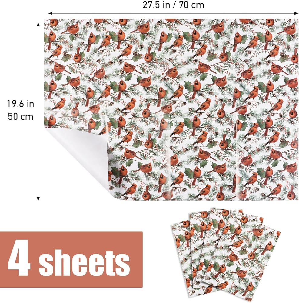 【Package Include】You will receive 4 sheets cardinal Christmas wrapping paper