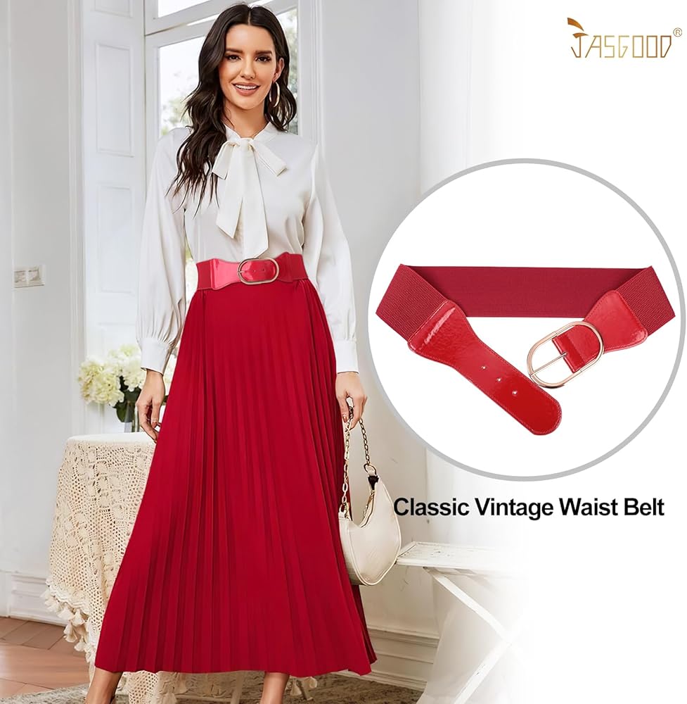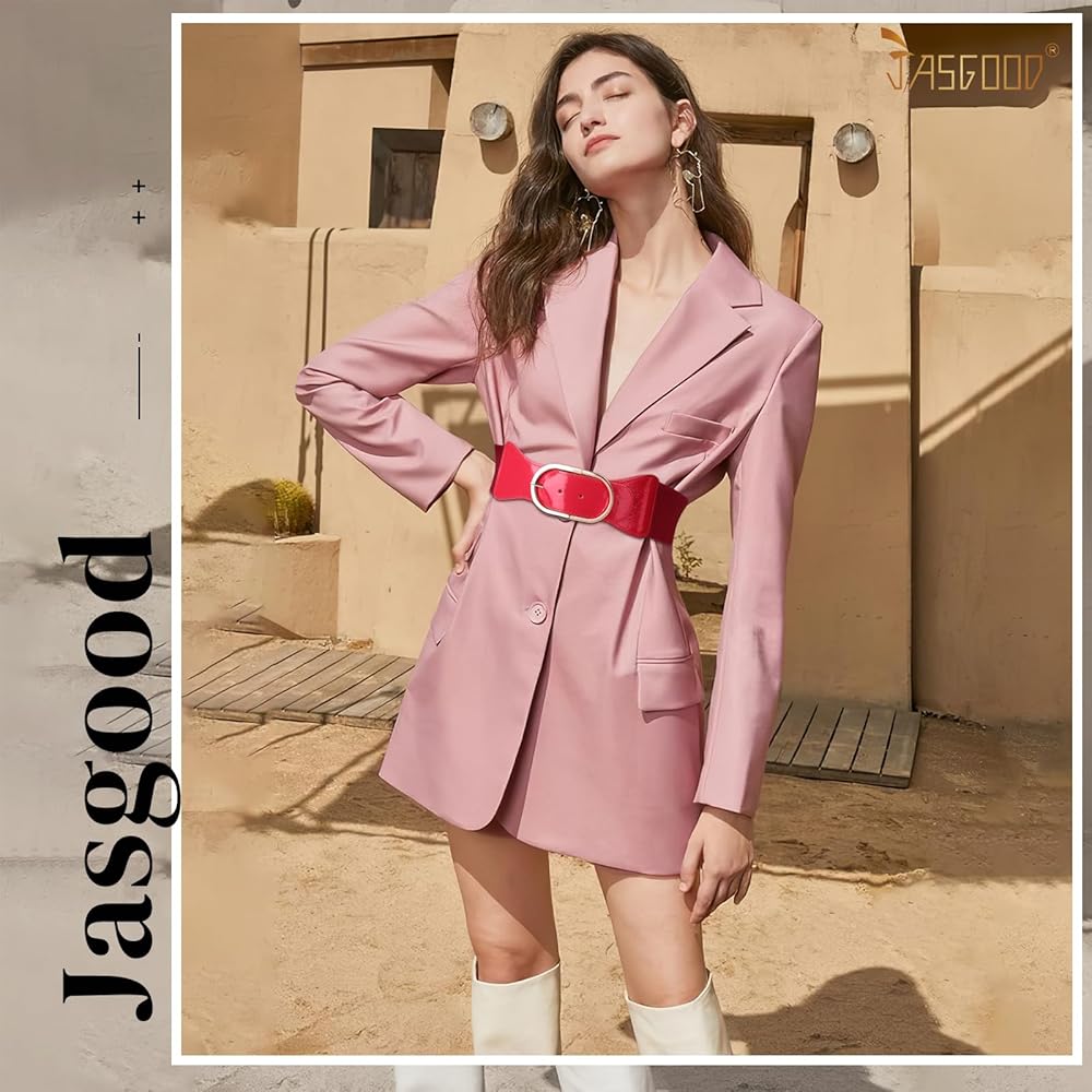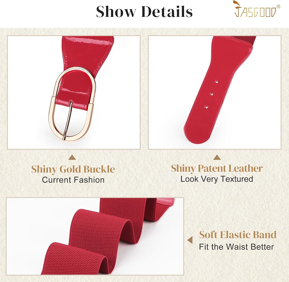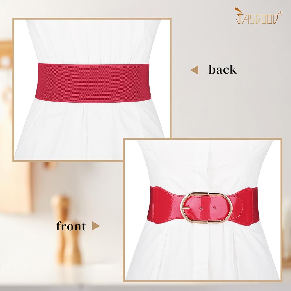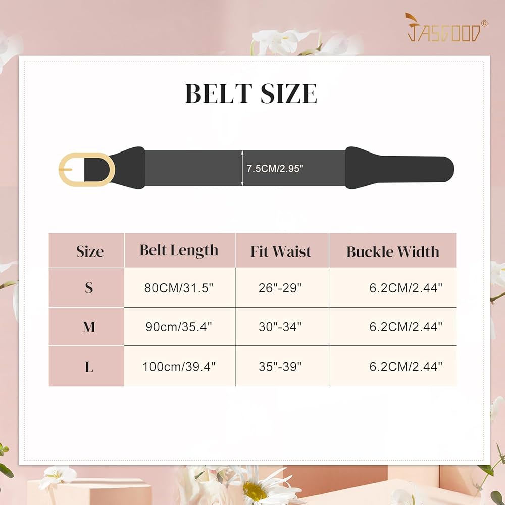 مقاس الحزام النسائي: أحزمة النساء متوفرة في إجمالي ثلاثة مقاسات: مقاس S: 26 بوصة - 29 بوصة/ مقاس M: 30 بوصة - 34 بوصة/ مقاس L: 35 بوصة - 39 بوصة، عرض الحزام المرن: 7.5 سم /2.95 ". الحزام المطاطي العريض بإبزيم ذهبي هو إكسسوار لا بد منه.